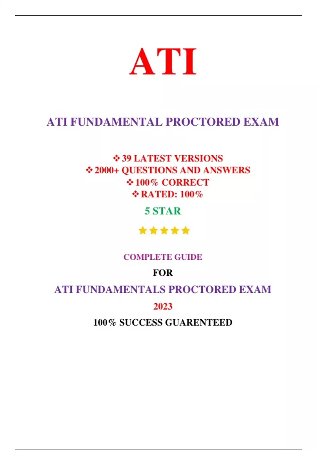 ATI FUNDAMENTALS PROCTORED EXAM (39 VERSIONS, NEW-2023) / FUNDAMENTALS ATI PROCTORED EXAM / ATI PROCTORED FUNDAMENTALS EXAM |REAL + PRACTICE EXAM|