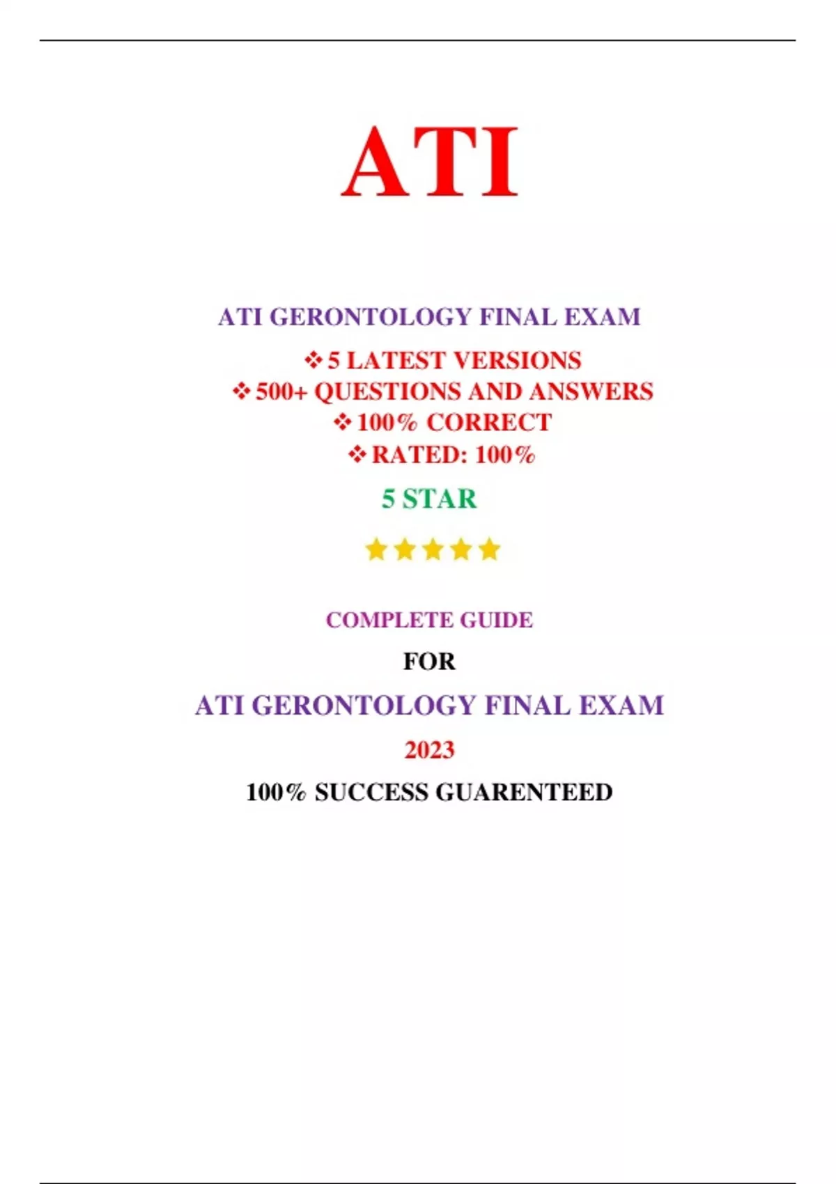 ATI GERONTOLOGY FINAL EXAM QUIZ (5 EXAM SETS, NEW-2023) / GERONTOLOGY ATI FINAL EXAM QUIZ/ ATI GERONTOLOGY FINAL EXAM QUIZ | REAL + PRACTICE EXAM |
