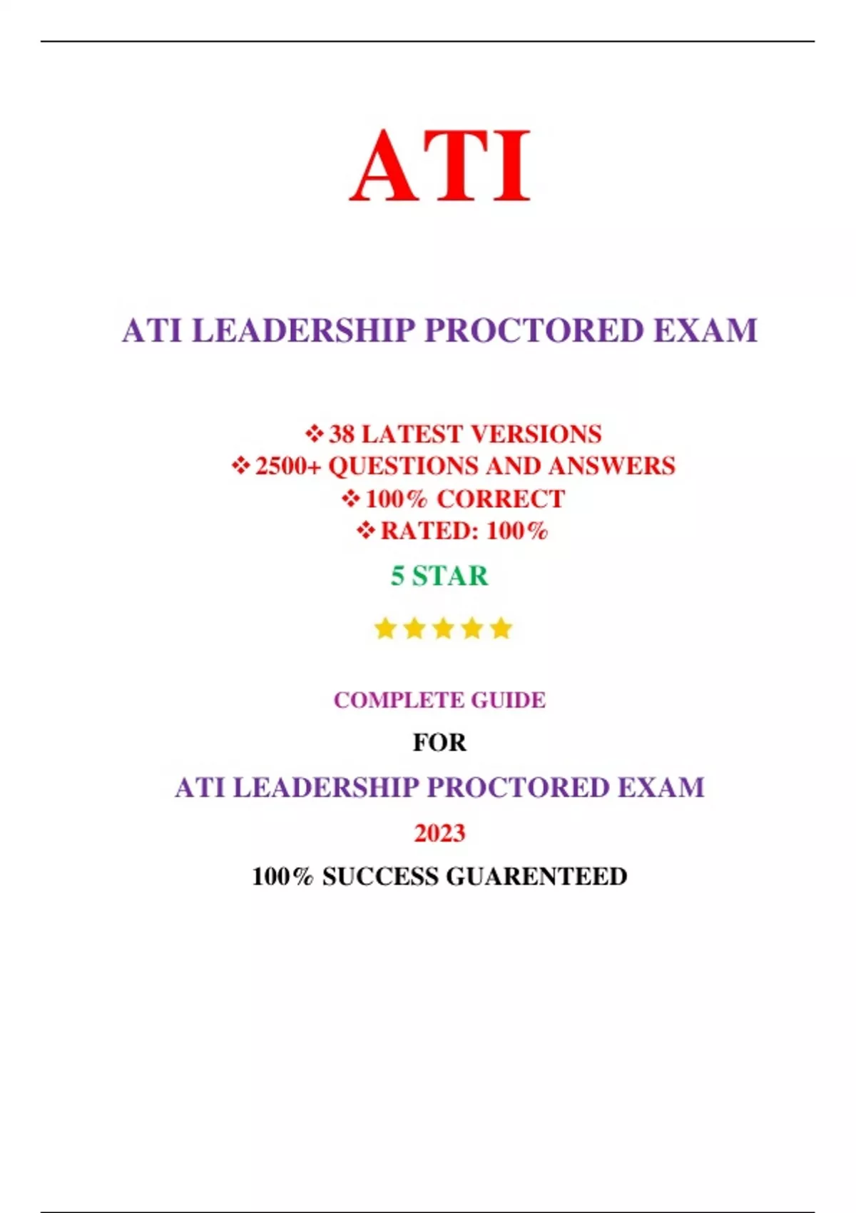 ATI LEADERSHIP PROCTORED EXAM (38 VERSIONS, NEW-2023) / LEADERSHIP ATI PROCTORED EXAM / ATI PROCTORED LEADERSHIP EXAM |REAL + PRACTICE EXAM|