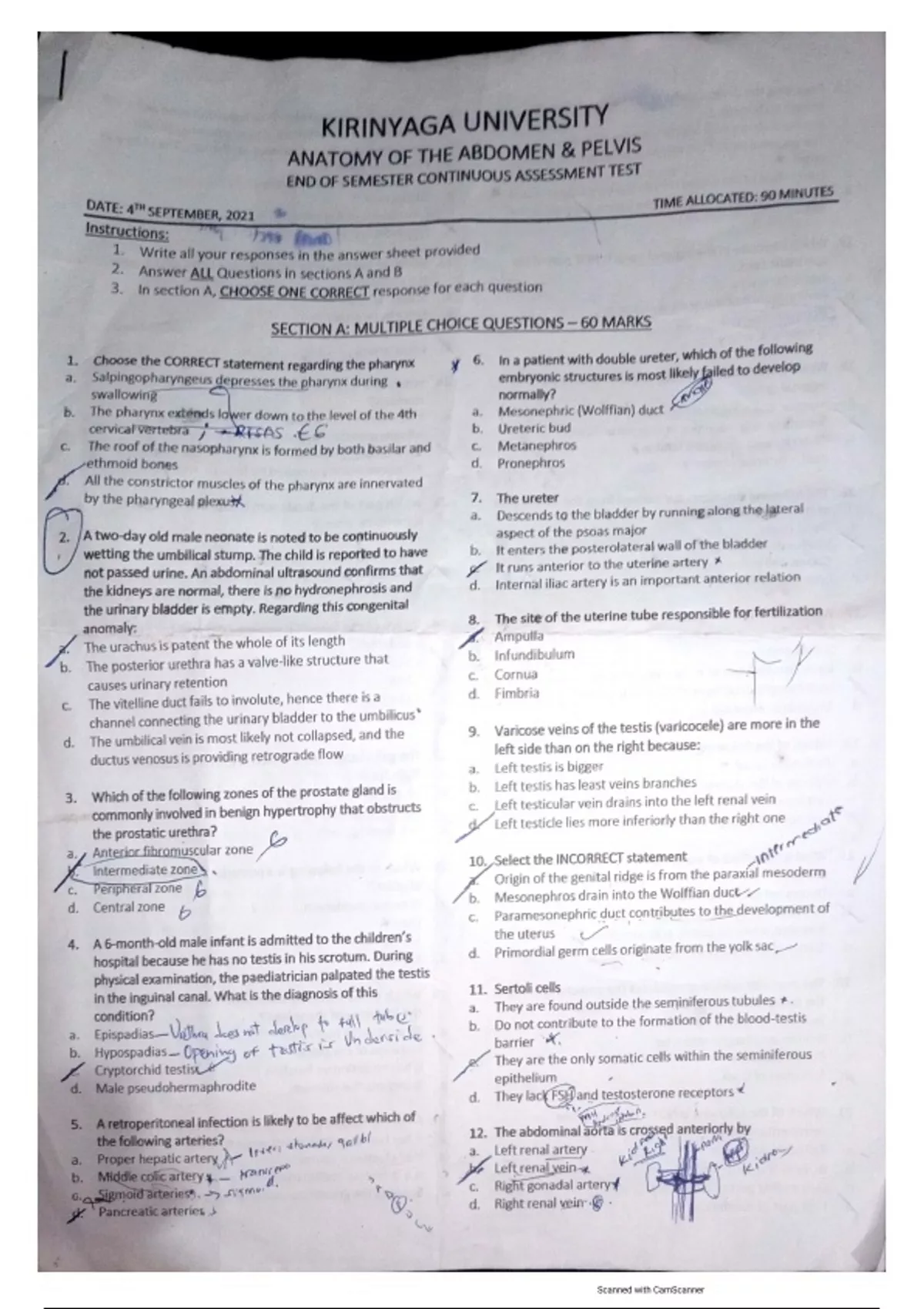 Choose the CORRECT statement regarding the pharynx Salpingopharyngeus depresses the pharynx during swallowing The pharynx estends lower down to the level of the 4th cervical vertebra +RICAS ECA two-day old male neonate is noted to be continuously wetting the umbilical stump. The child is reported have not passed urine. An abdominal ultrasound confirms that the kidneys are normal, there is no hydronephrosis and the urinary bladder is empty. Regarding this congenital anomaly:Which of the following zones of the prostate gland is commonly involved in benign hypertrophy that obstructs the prostatic urethra?In a patient with double ureter, which of the following embryonic structures is most likely failed to develop normally?ANATOMY OF THE ABDOMEN AND PLEVIS QUESTIONS WITH CORRECT ANSWERS