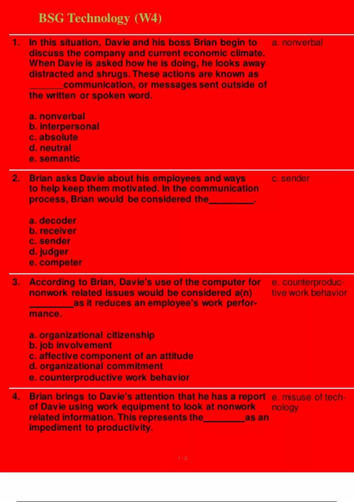 Exam of 3 pages for the course BSG at BSG (BSG Technology (W4))
