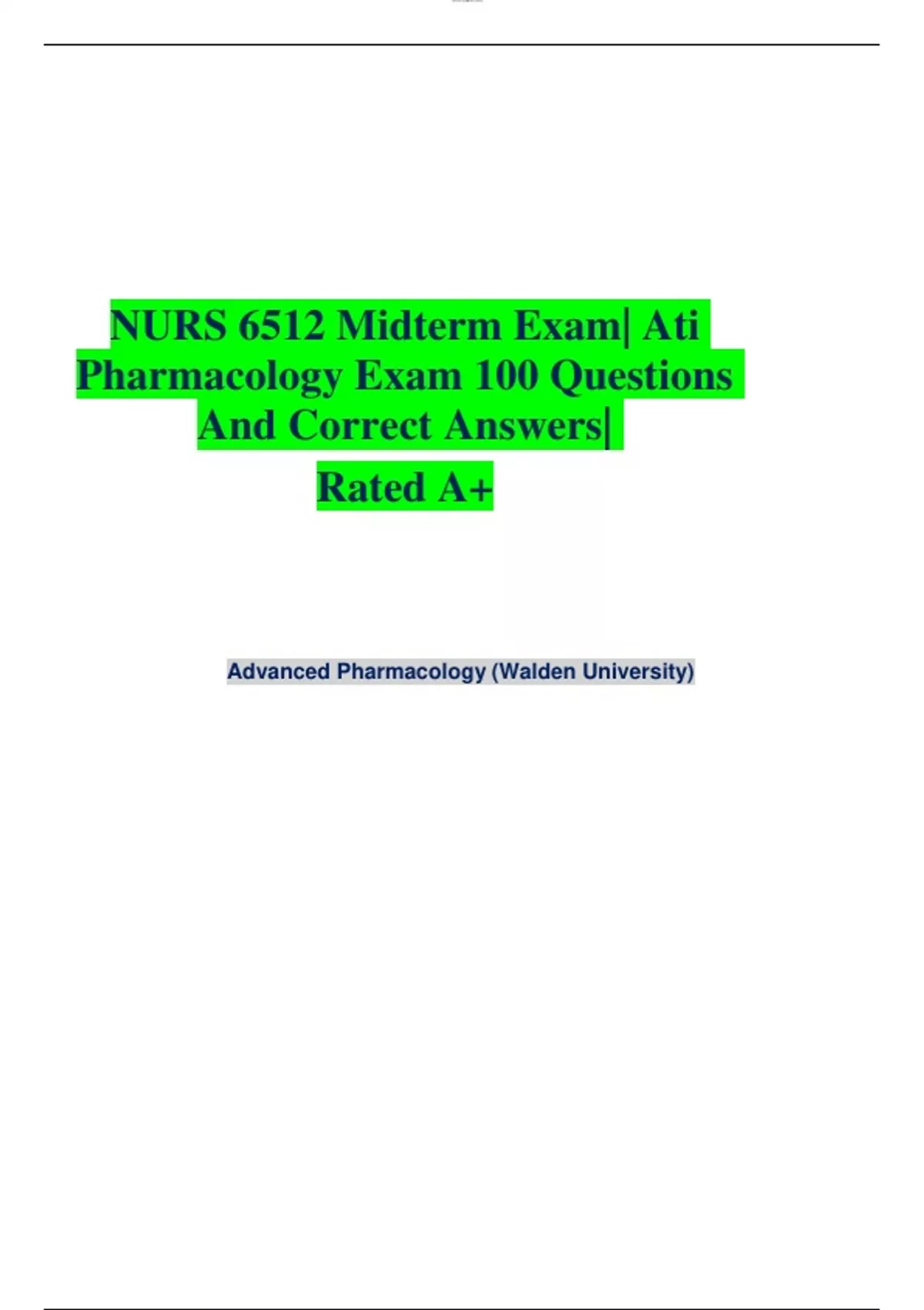 nurs 6512 midterm exam| ati pharmacology exam 100 questions and correct answers| rated a