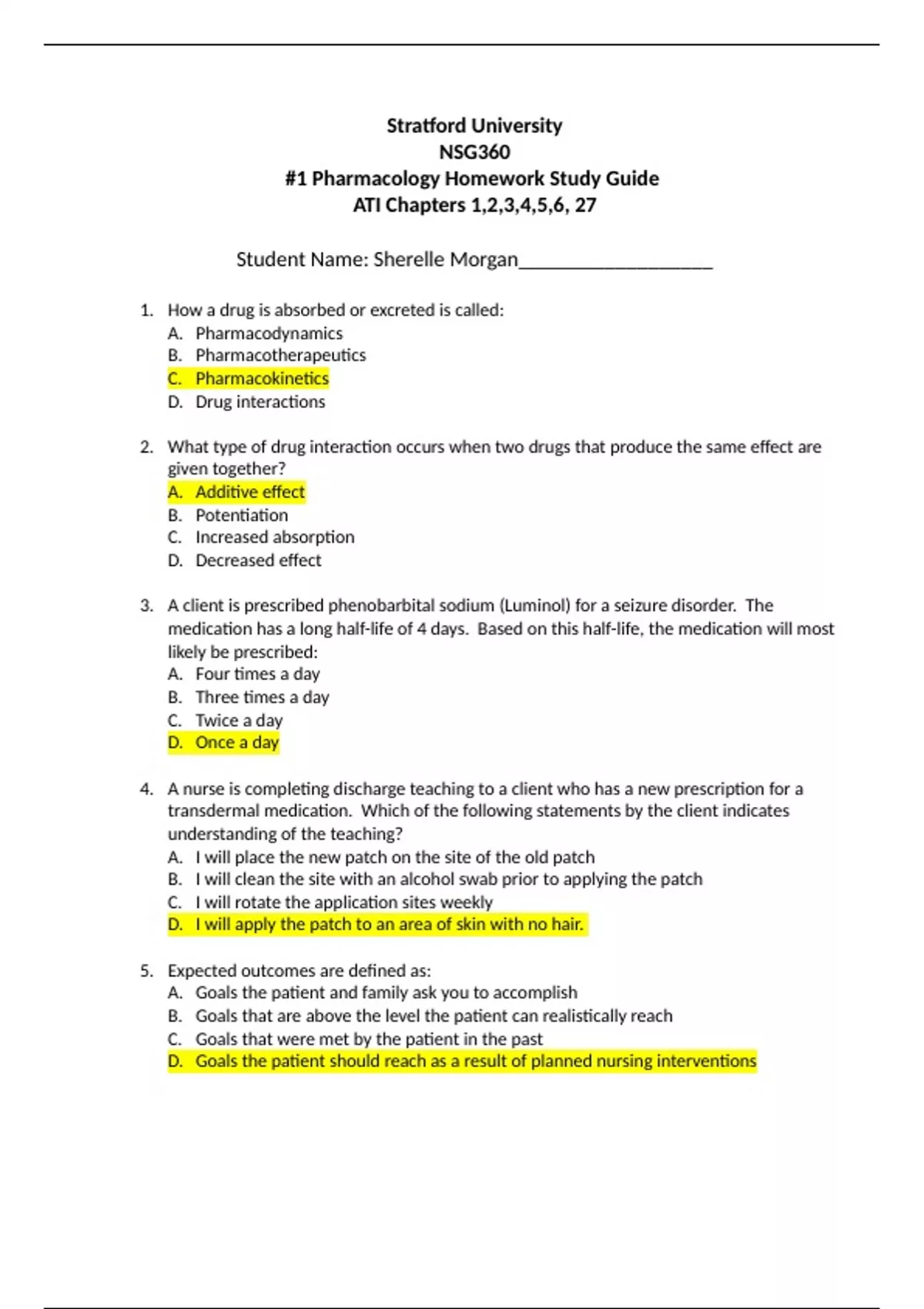 nsg 360 1 pharmacology homework study guide