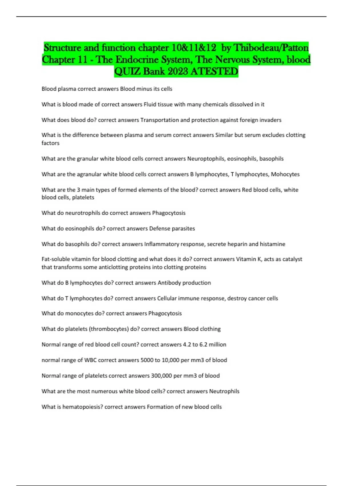 blood quiz bank 2023 atested
