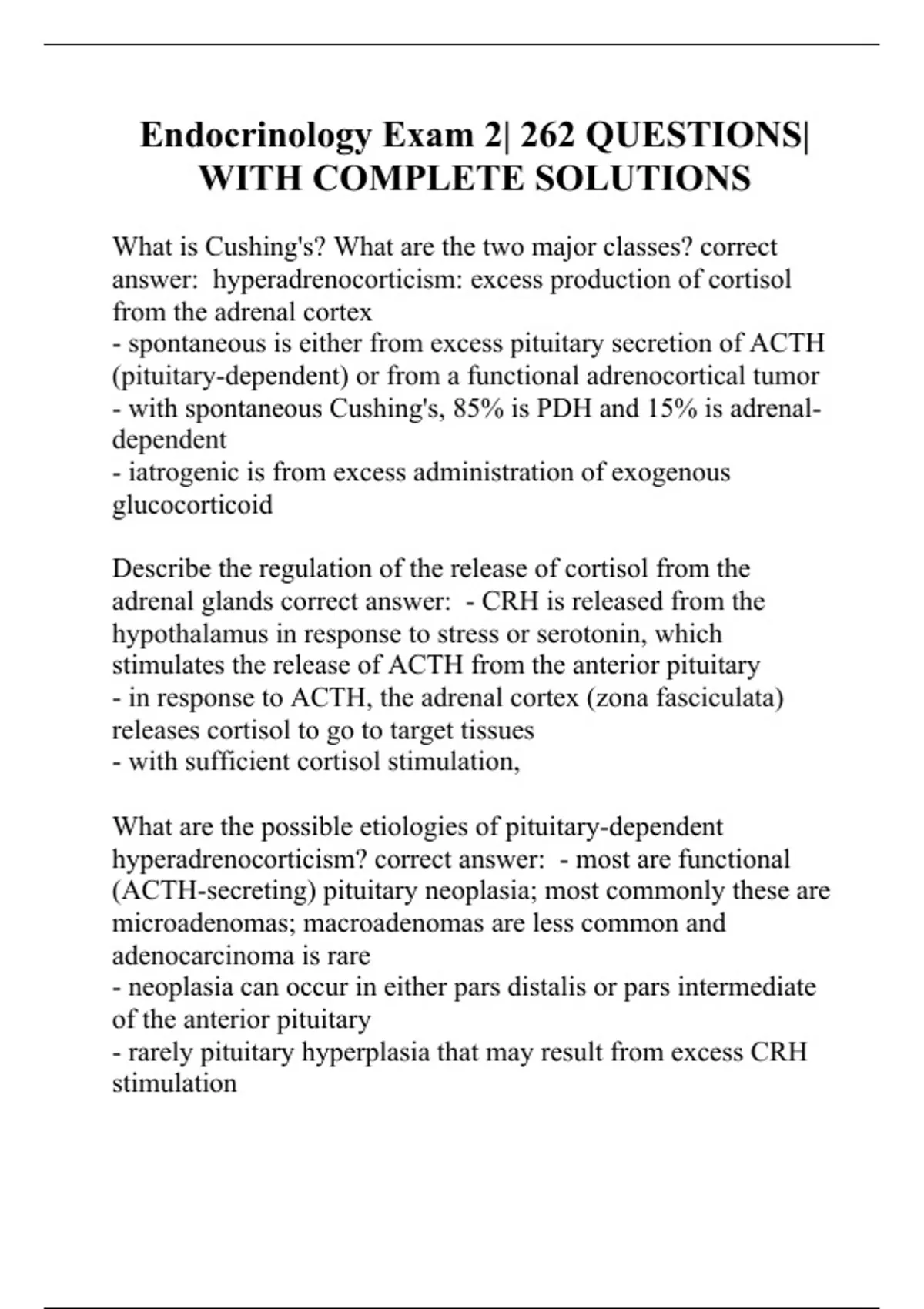Endocrinology Exam 2| 262 QUESTIONS| WITH COMPLETE SOLUTIONS