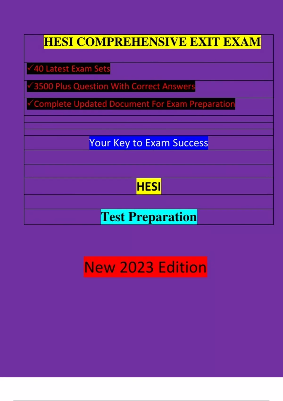 HESI EXIT EXAM (40 EXAM SETS) / EXIT HESI EXAM (40 EXAM SETS) / EXIT EXAM HESI (40 EXAM SETS): LATEST