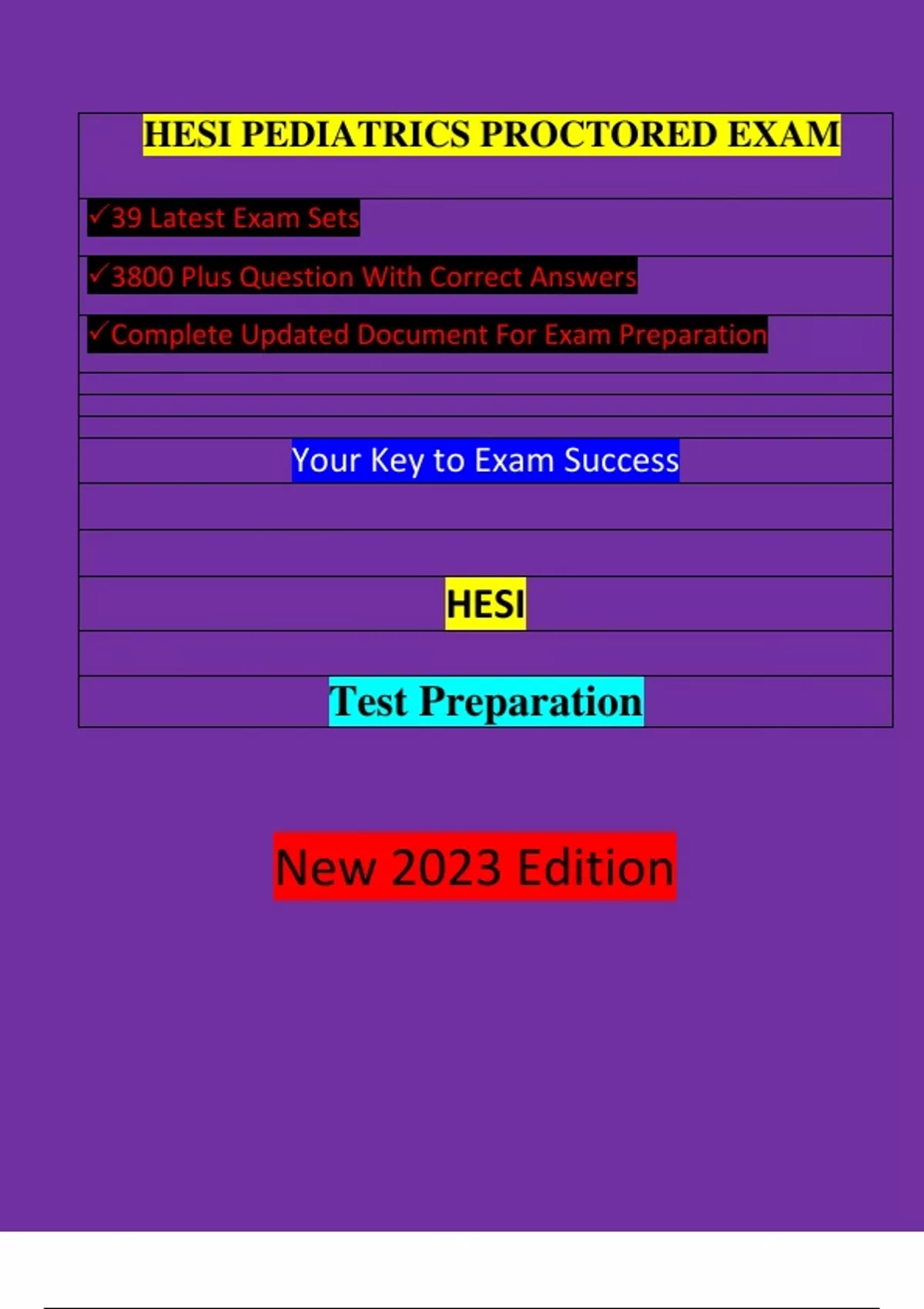 HESI PEDIATRICS PROCTORED EXAM (39 EXAM SETS) / PEDIATRICS HESI PROCTORED EXAM (39 EXAM SETS) / PEDIATRICS PROCTORED HESI EXAM (39 EXAM SETS):LATEST