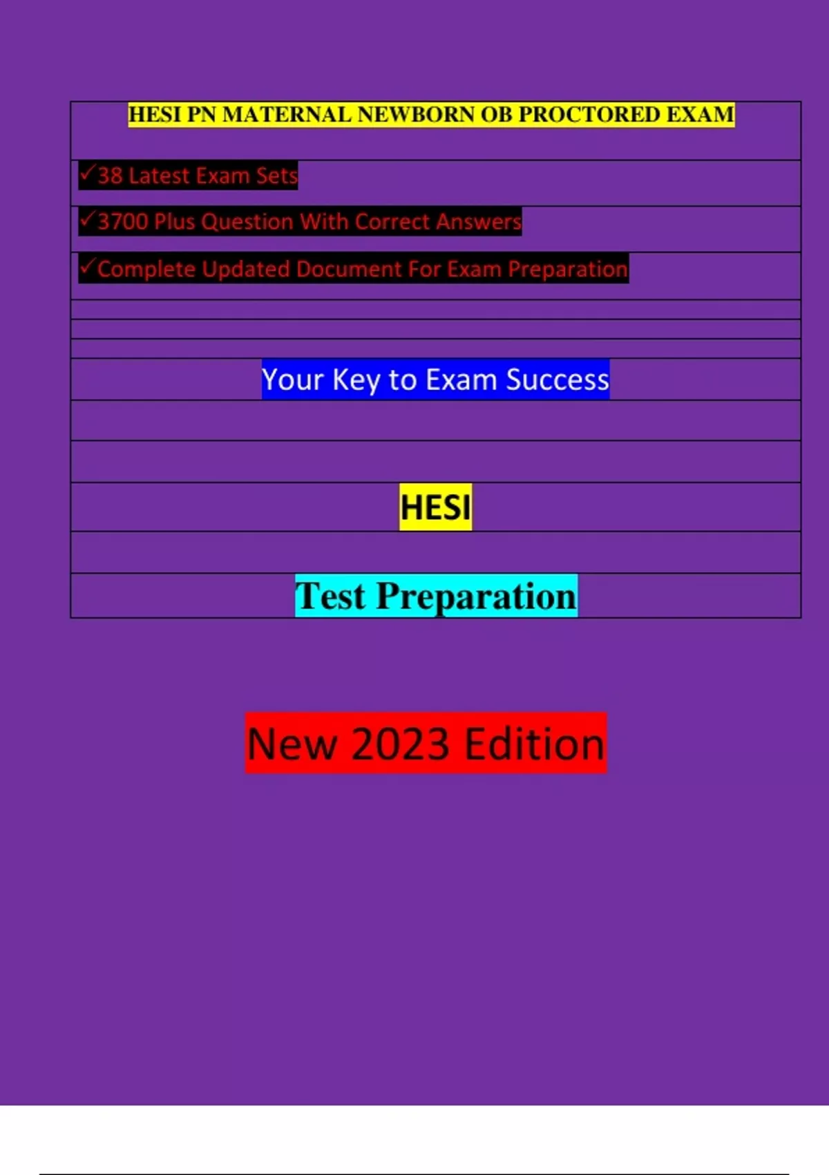 HESI PN MATERNAL NEWBORN OB EXAM (38 EXAM SETS) / PN MATERNAL NEWBORN OB HESI EXAM (38 EXAM SETS) / PN MATERNAL NEWBORN OB EXAM HESI (38 EXAM SETS):LATEST