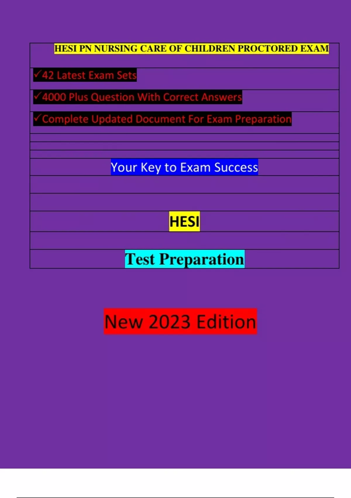 HESI PN NURSING CARE OF CHILDREN PROCTORED EXAM (42 EXAM SETS) / PN HESI NURSING CARE OF CHILDREN PROCTORED EXAM (42 EXAM SETS) :LATEST