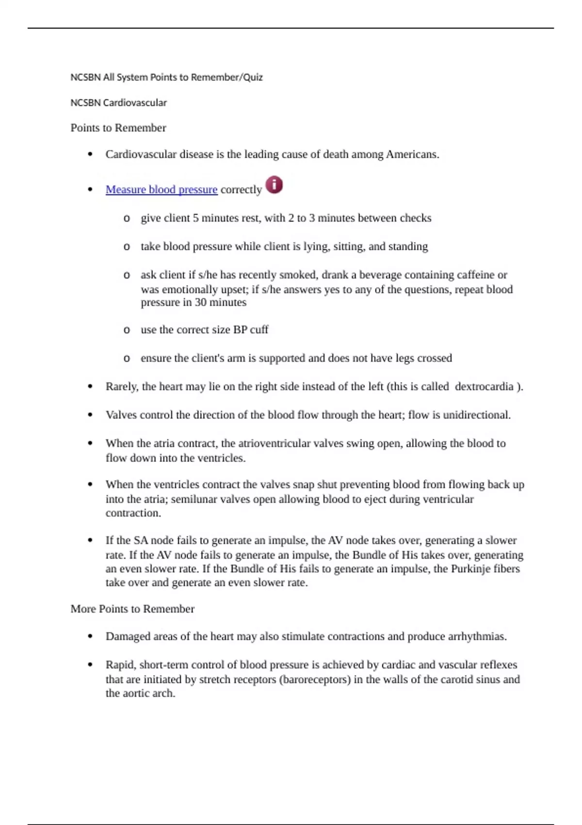 NCSBN All System Points to Remember/Quiz NCSBN Cardiovascular