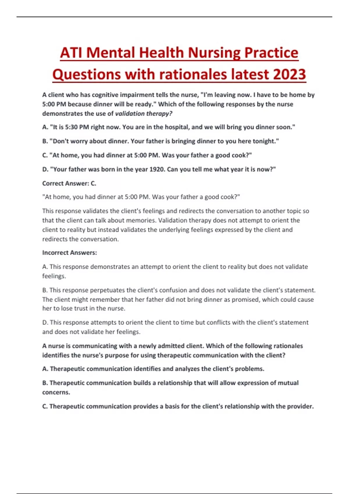 ati mental health nursing practice questions with rationales latest 2023