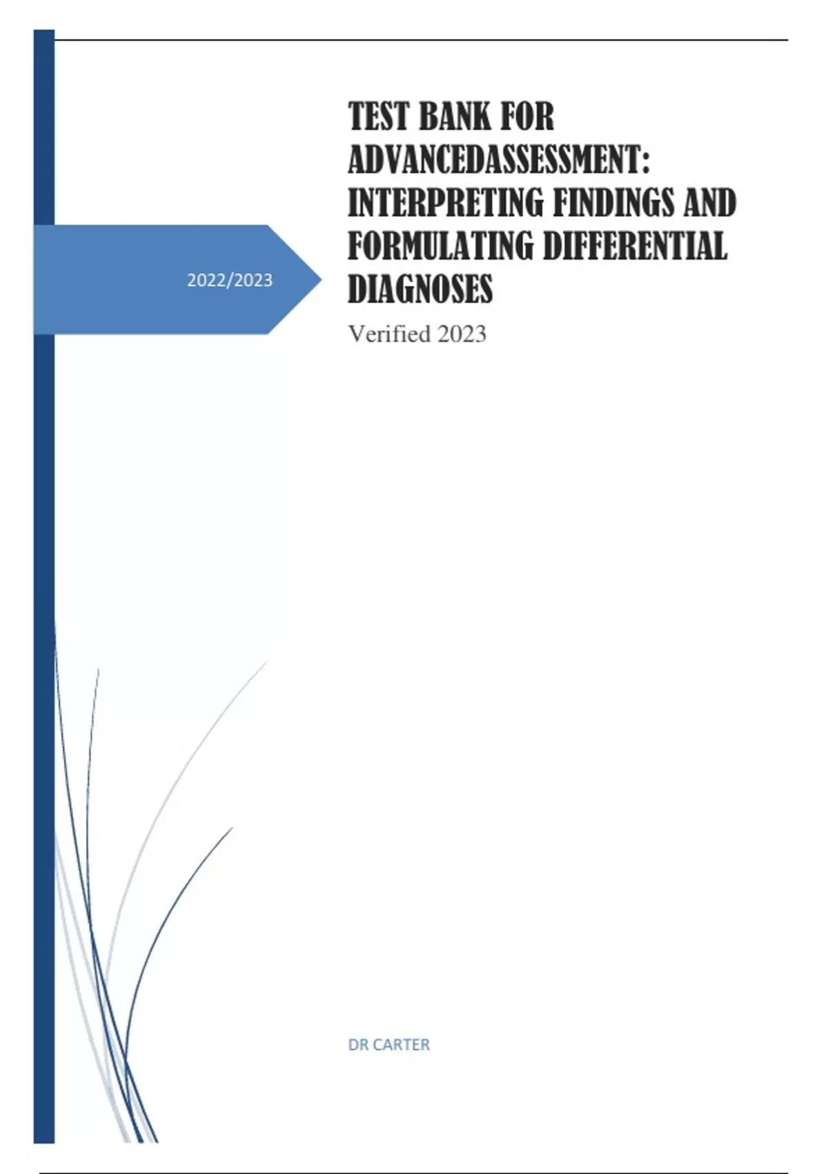 TEST BANK FOR ADVANCEDASSESSMENT: INTERPRETING FINDINGS AND FORMULATING DIFFERENTIAL DIAGNOSES Verified 2023