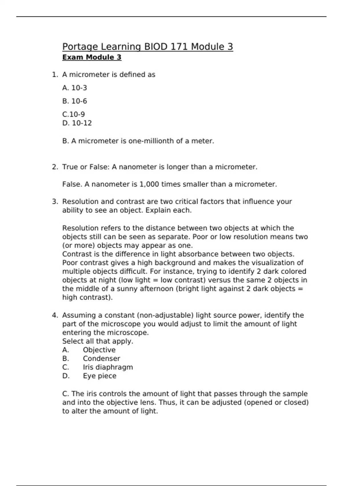 portage learning biod 171 module 3 updated 2023 version