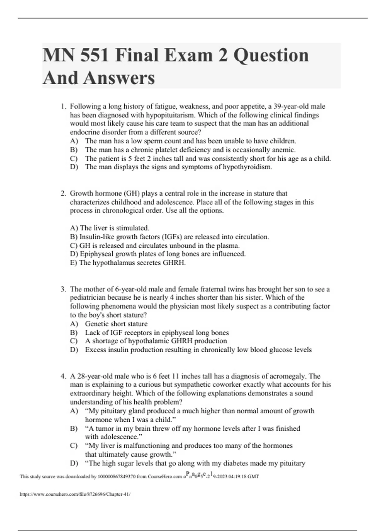 MN 551 Final Exam 2 – Question And Answers