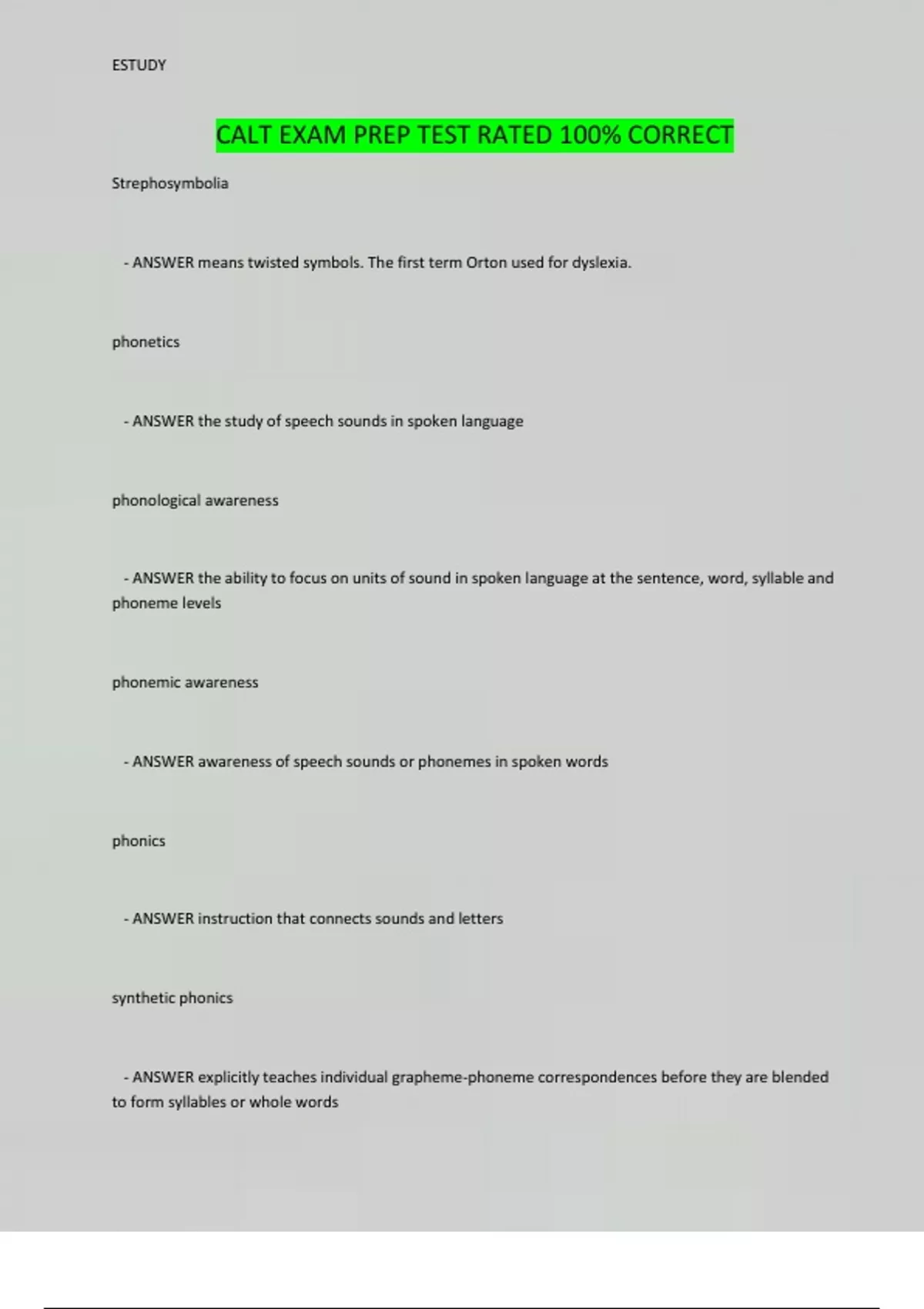 CALT EXAM PREP TEST RATED 100% CORRECT