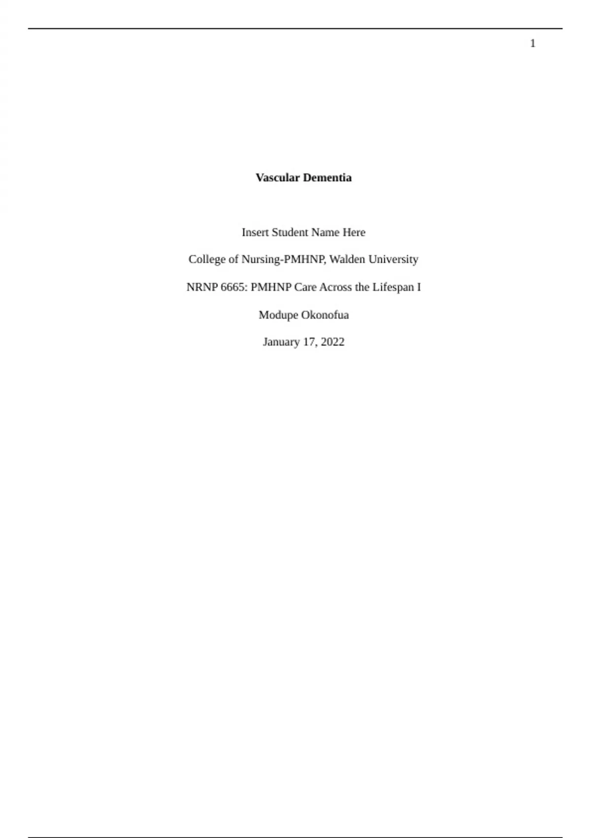 walden university nrnp 6665 pmhnp care across the lifespan i vascular dementia