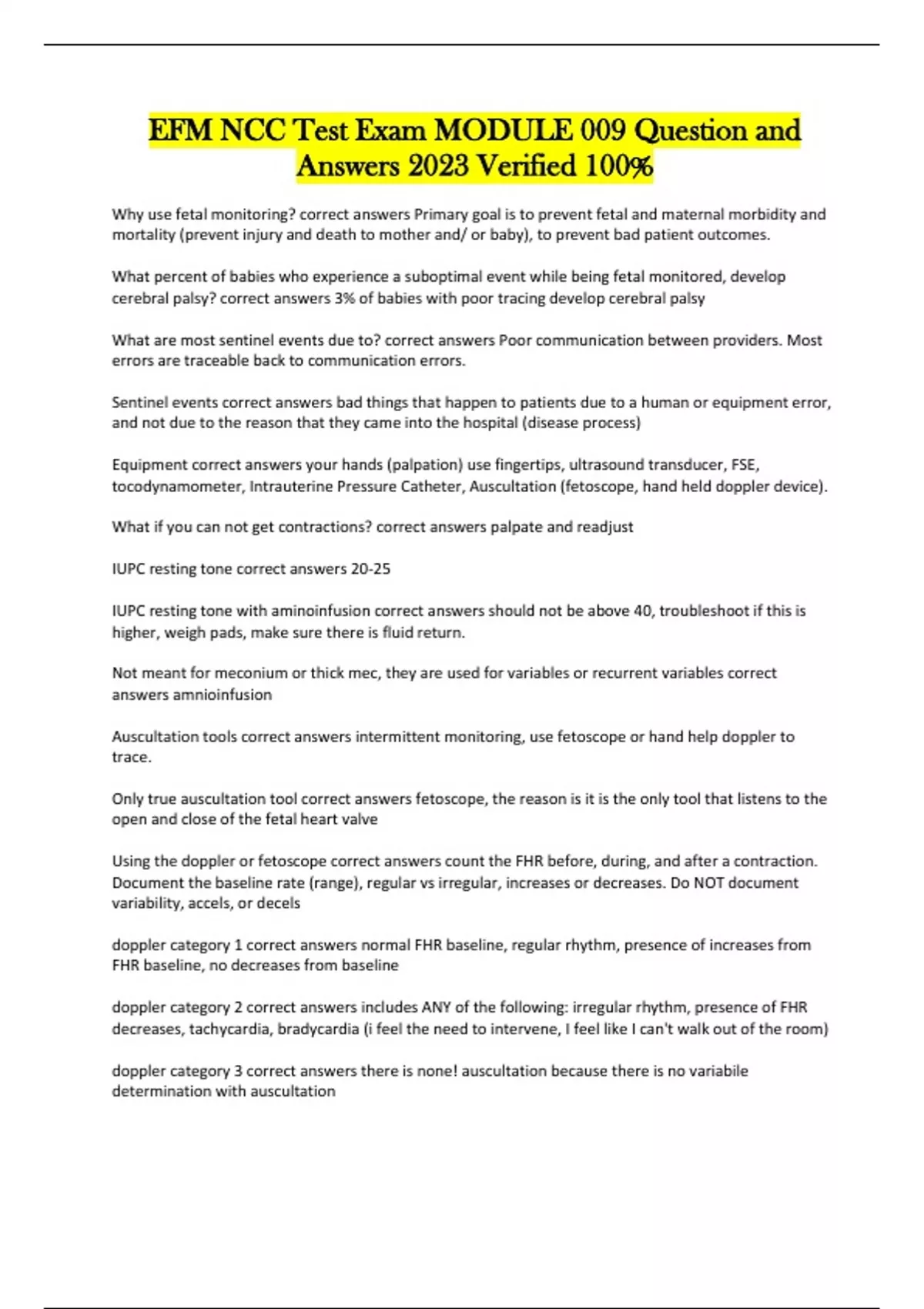 efm ncc test exam module 009 question and answers 2023 verified 100