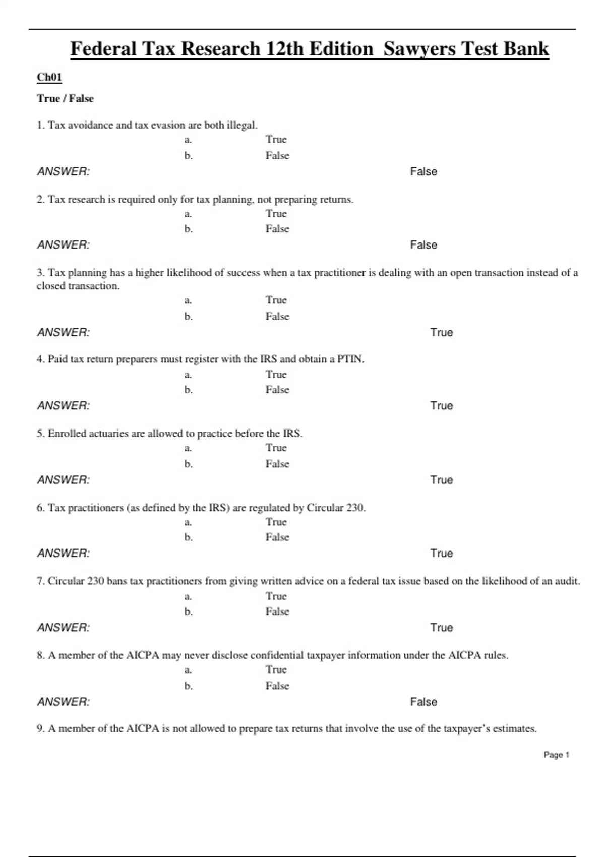 Test Bank for Federal Tax Research 12th Edition Sawyers / All Chapters 1 - 13 / Full Complete