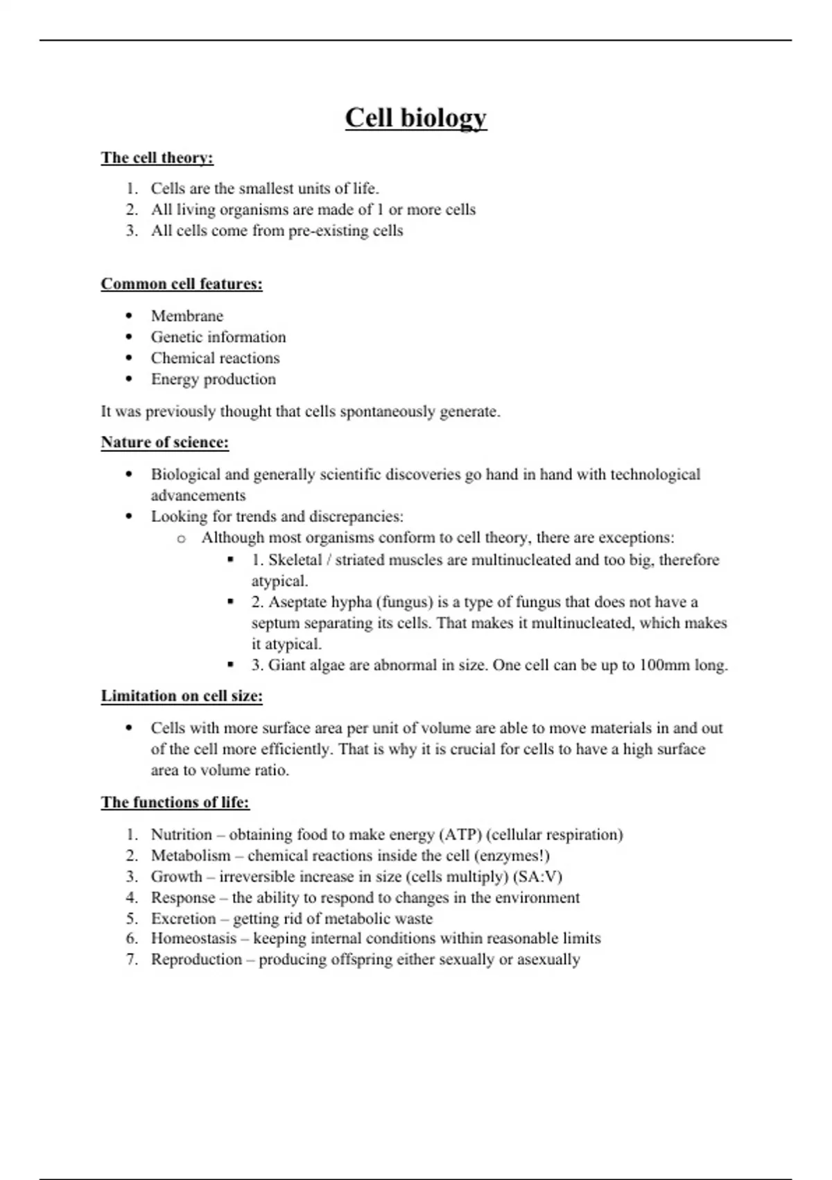 3. Growth – irreversible increase in size (cells multiply) (SA:V)
