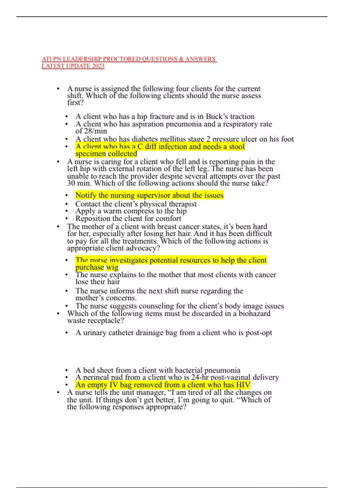 ATI PN LEADERSHIP PROCTORED QUESTIONS & ANSWERS LATEST UPDATE 2023