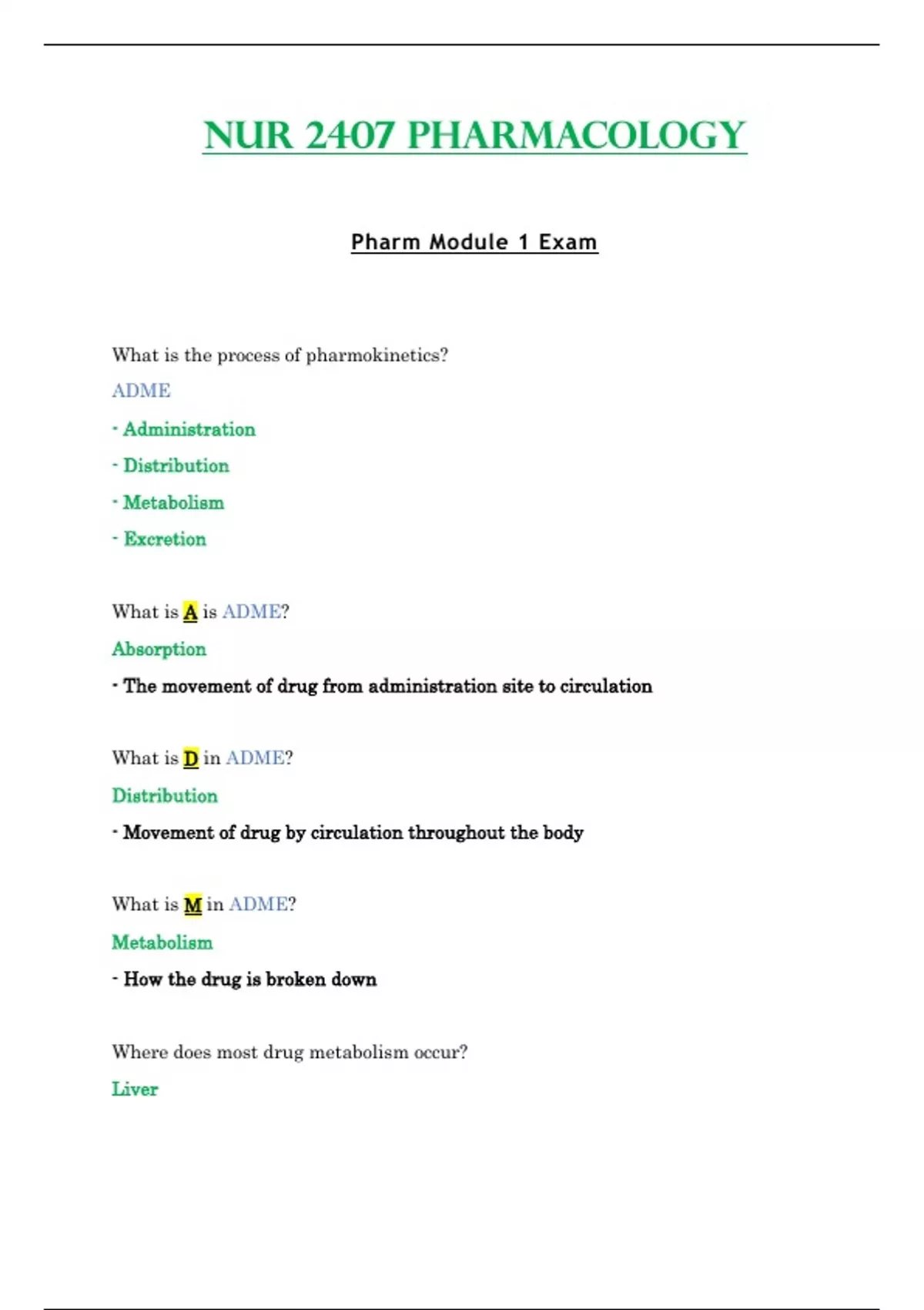 Module 1 Exam - NUR2407 / NUR 2407 (Latest 2023 / 2024) : Pharmacology - Rasmussen