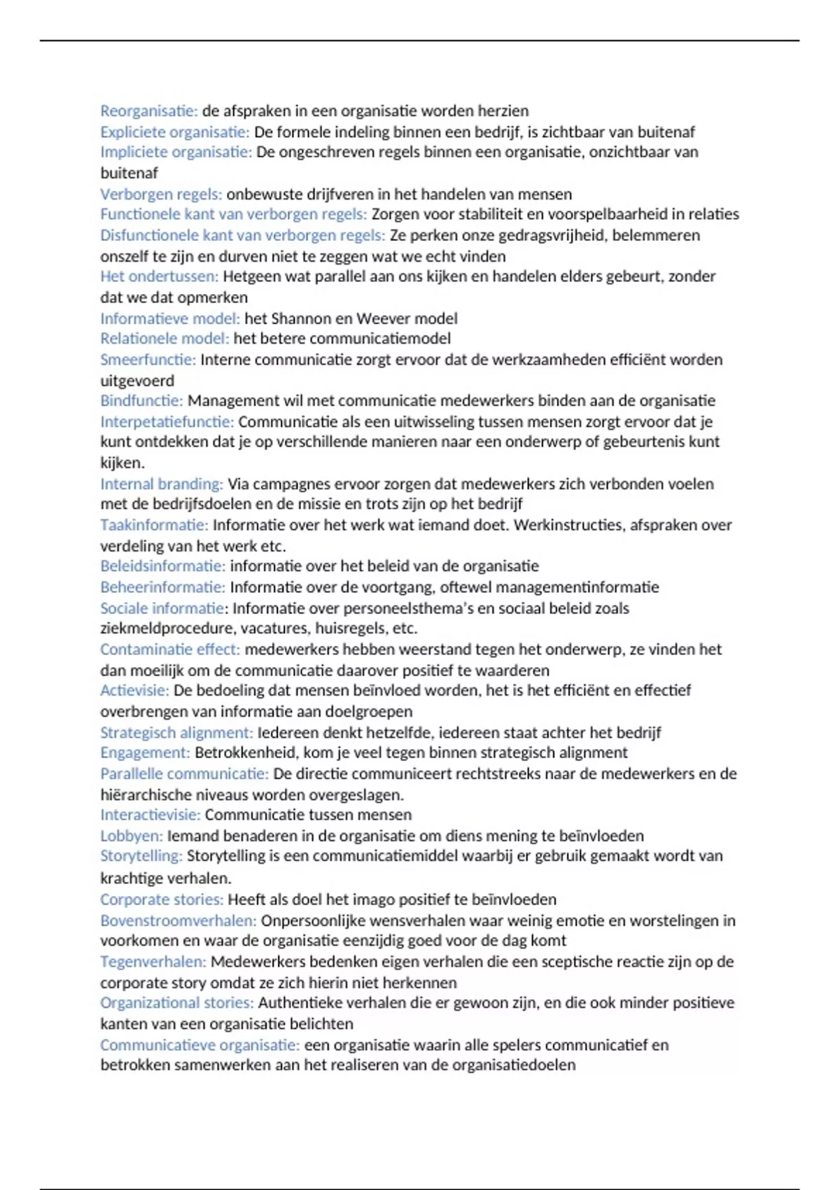 Samenvatting Begrippenlijst interne communicatie (Organisatieontdekker)