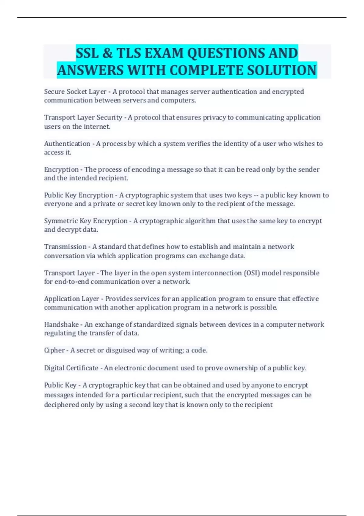 SSL & TLS EXAM QUESTIONS AND ANSWERS WITH COMPLETE SOLUTION