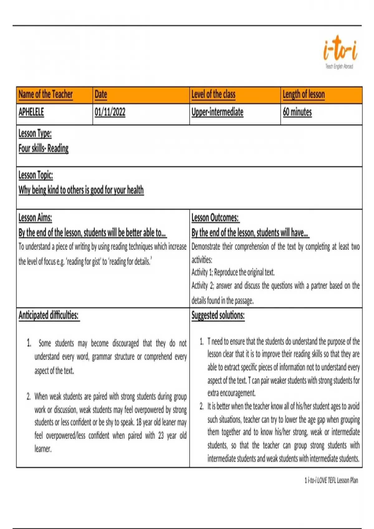 1 i-to-i LOVE TEFL Lesson Plan