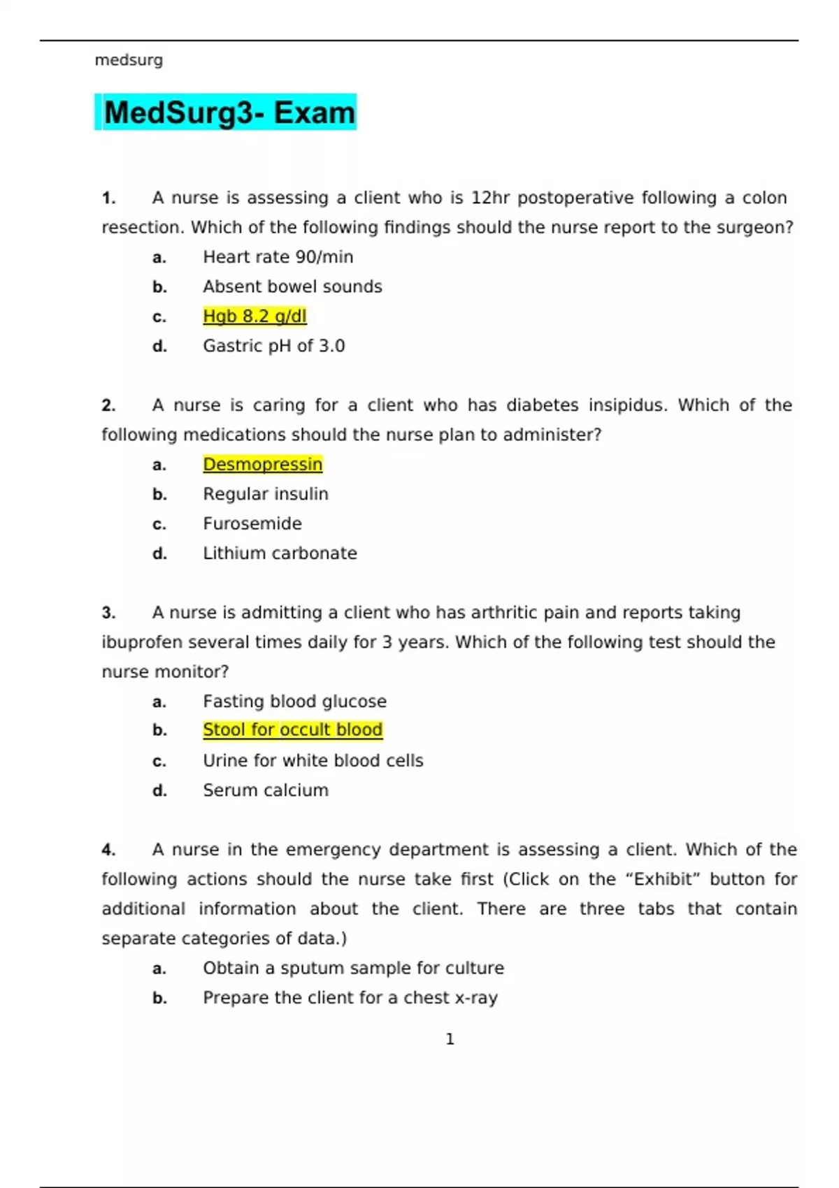 MedSurg3- Exam