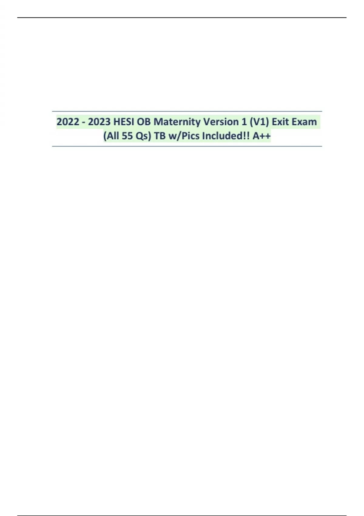HESI OB Maternity Version 1 (V1) Exit Exam (All 55 Qs) TB w/Pics Included!! A++