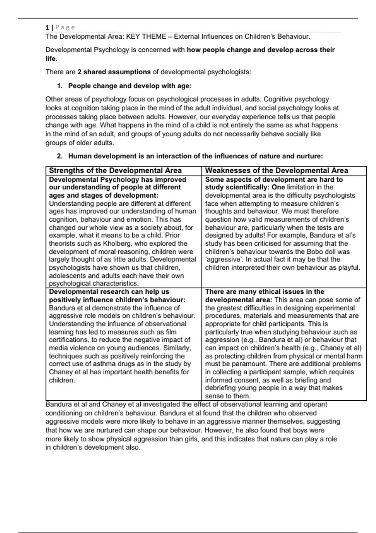 The Developmental Area: KEY THEME – External Influences on Children’s Behaviour.