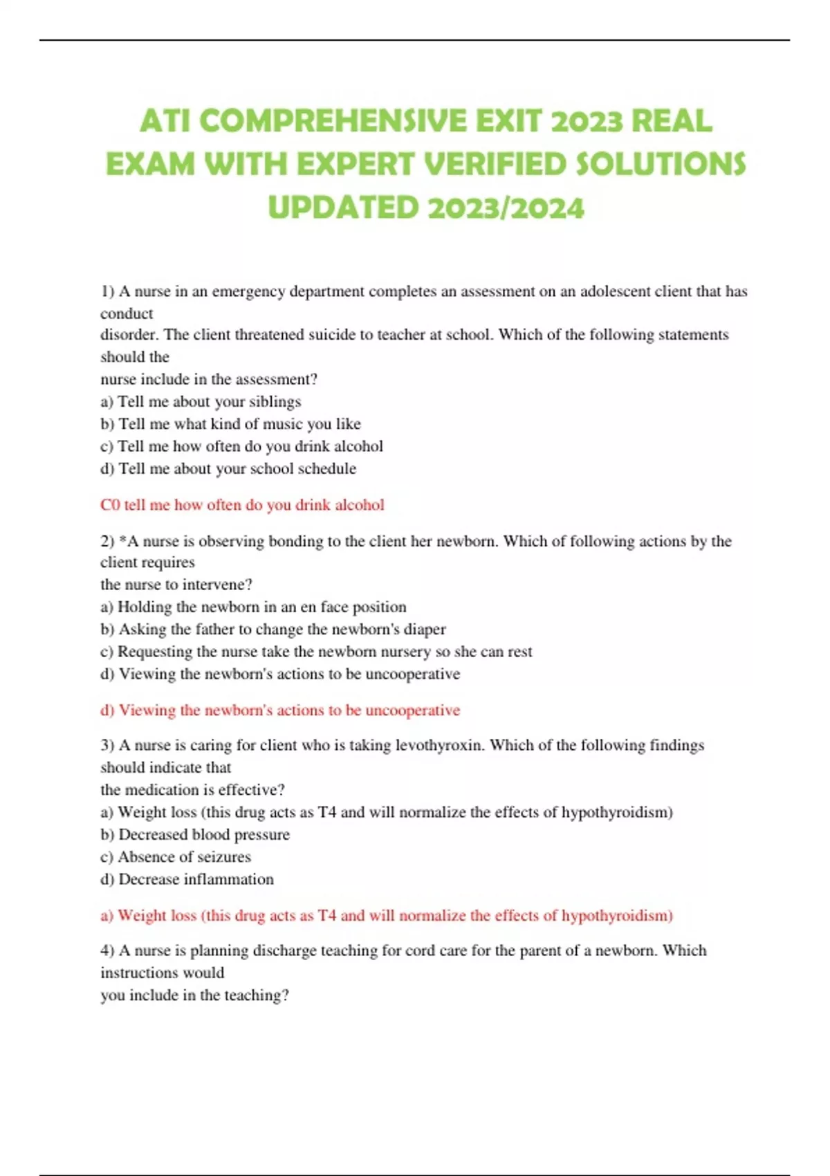ATI COMPREHENSIVE EXIT 2023 REAL EXAM WITH EXPERT VERIFIED SOLUTIONS UPDATED 2023/2024