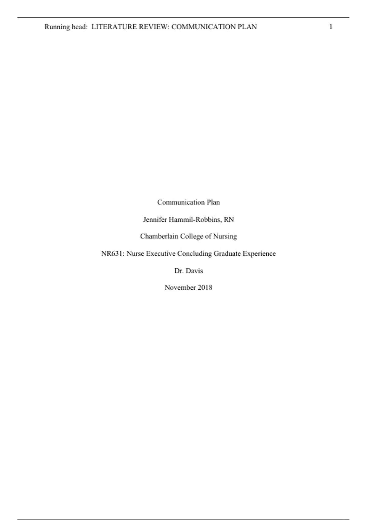 - NR631 Nurse Executive Concluding Graduate Experien