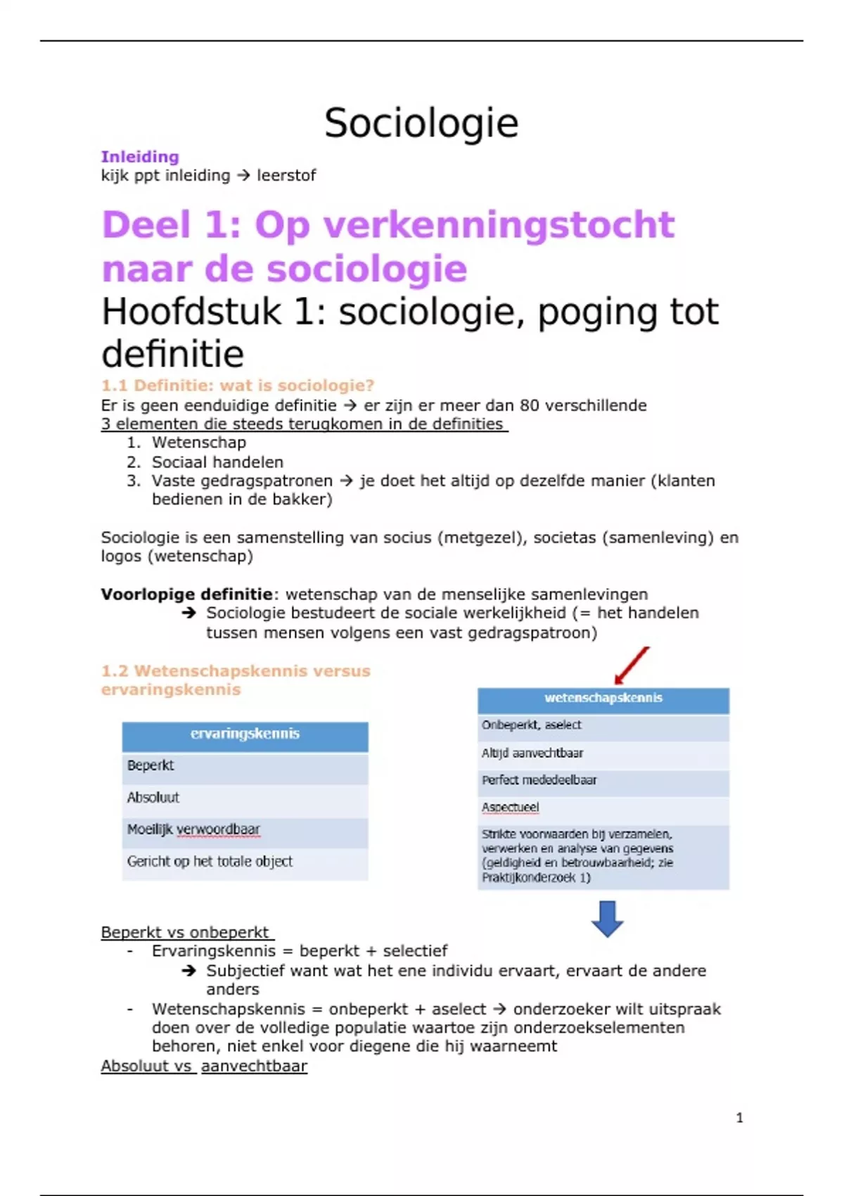 Hoofdstuk 1: sociologie, poging tot