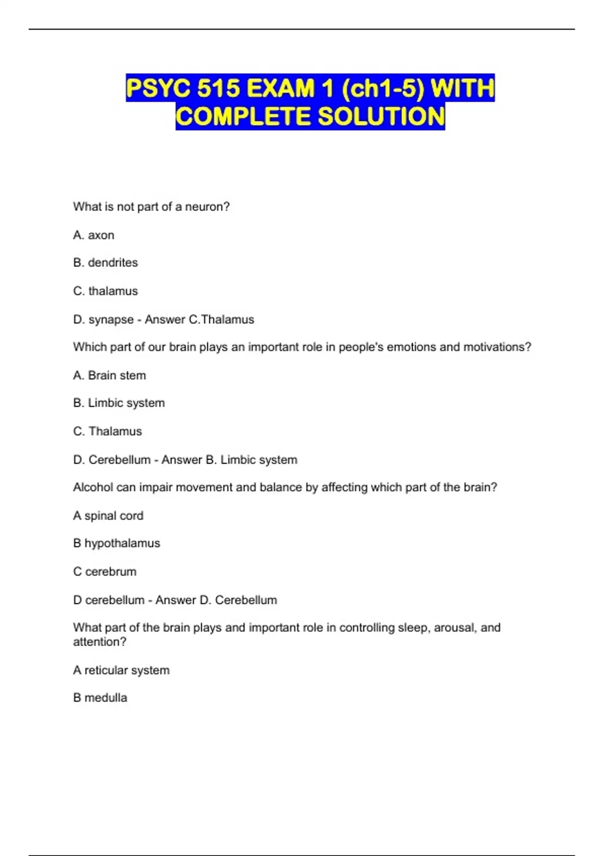 PSYC 515 PACKAGED EXAMS ALL WITH COMPLETE SOLUTION
