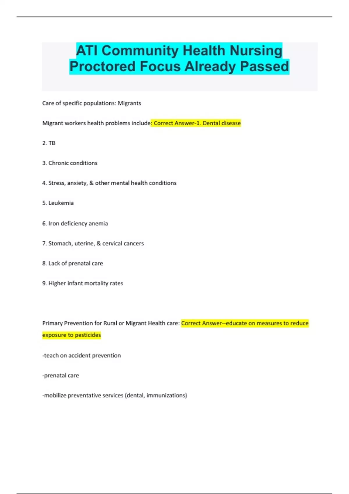 ATI Community Health Nursing Proctored Focus Already Passed