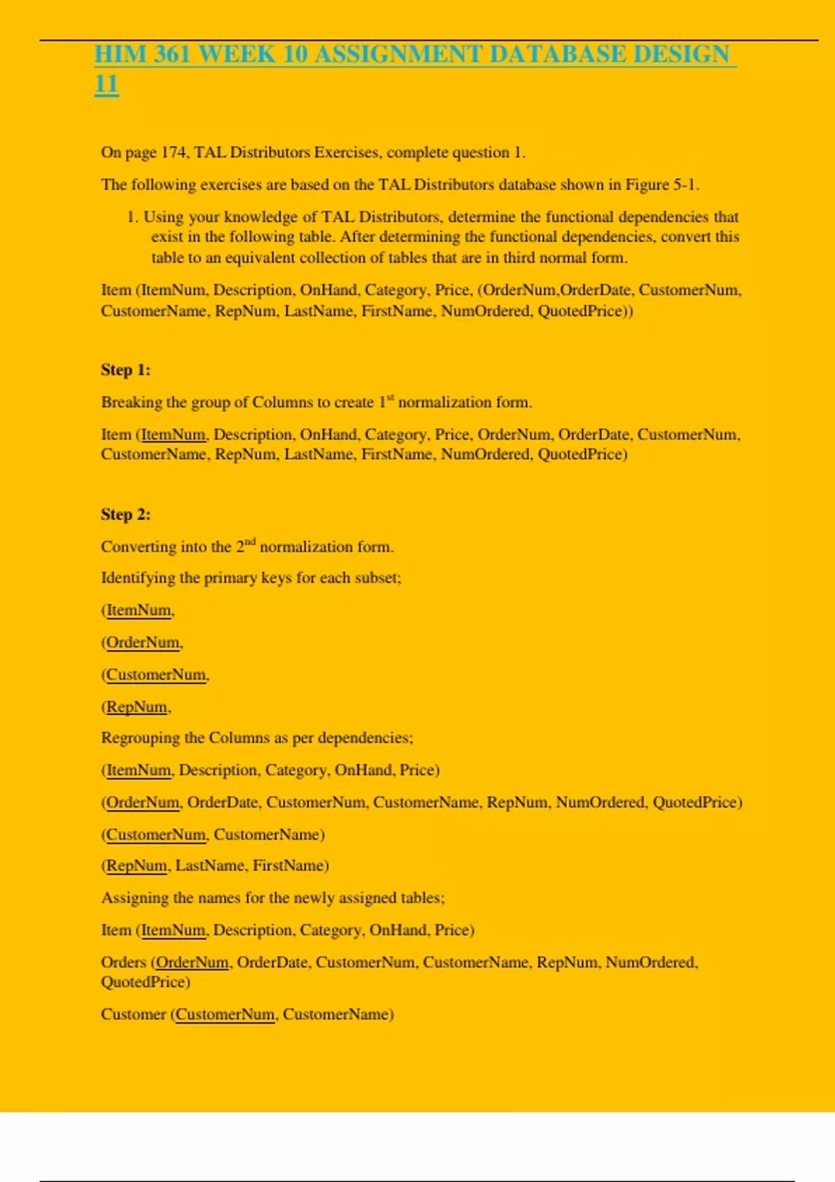 HIM 361 Week 10 Assignment 1 Database Design II