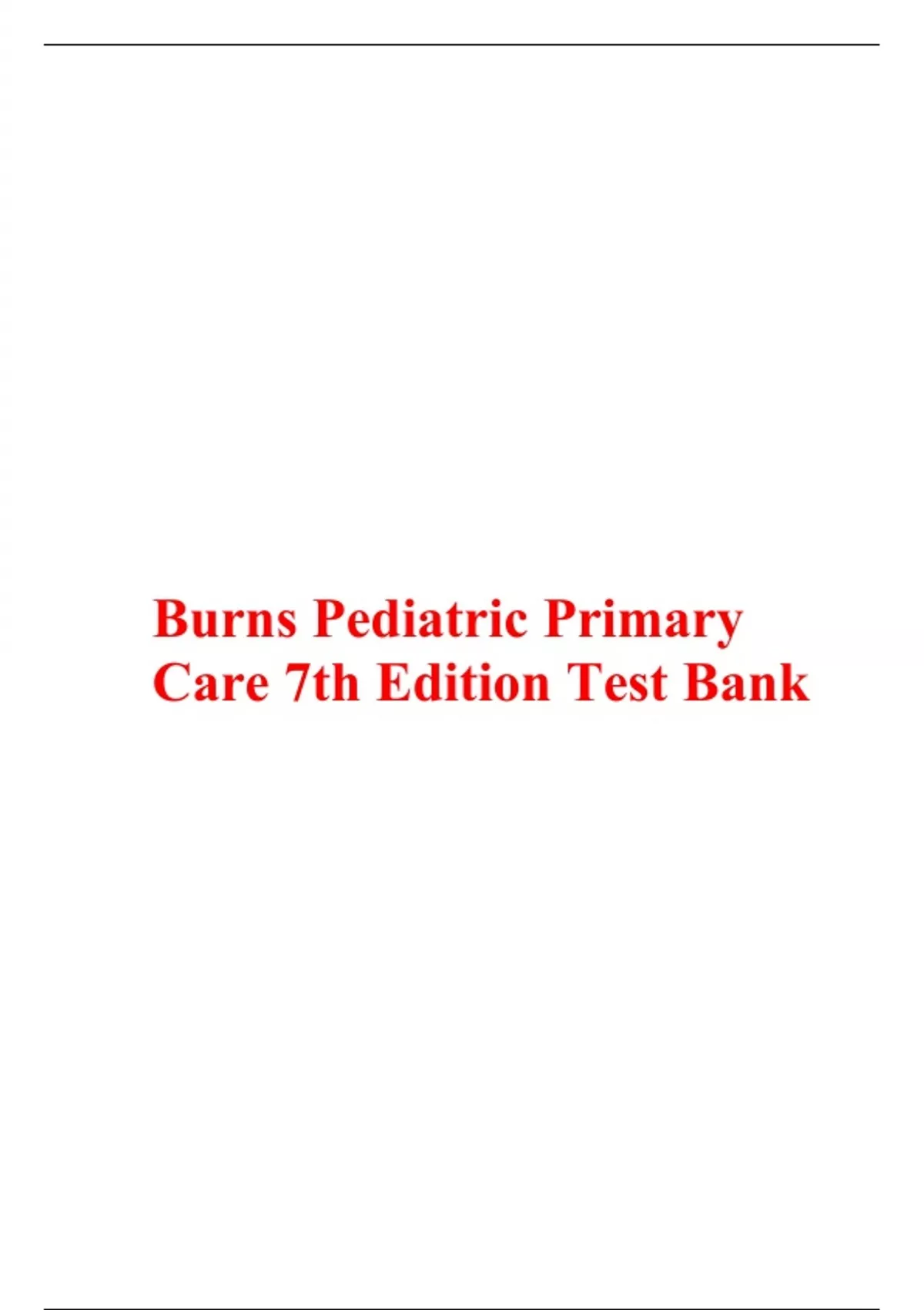 Burns Pediatric Primary Care 7th Edition All Chapters Complete Test Bank