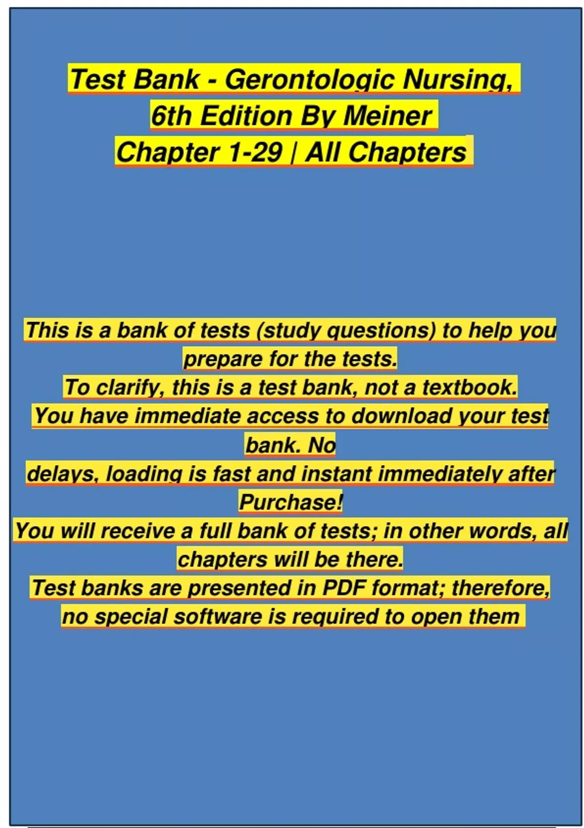 Gerontologic Nursing 6th Edition by Sue E. Meiner Test Bank | Complete Chapter 1 - 29 | 100 % Verified Gerontologic Nursing 6th Edition by Sue E. Meiner Test Bank | Complete Chapter 1 - 29 | 100 % Verified