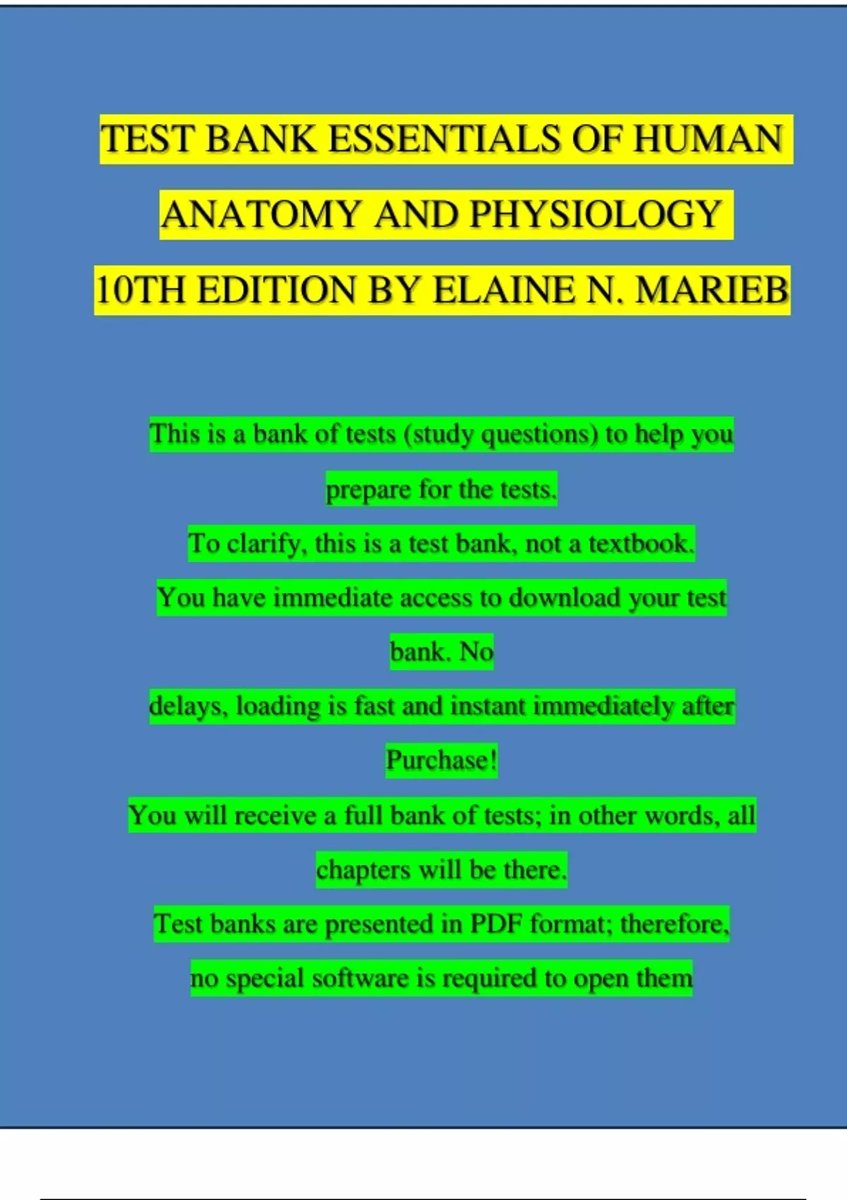 TEST BANK for Essentials of Human Anatomy & Physiology 10th Edition by Elaine N. Marieb | Complete Chapters | 100 % Verified