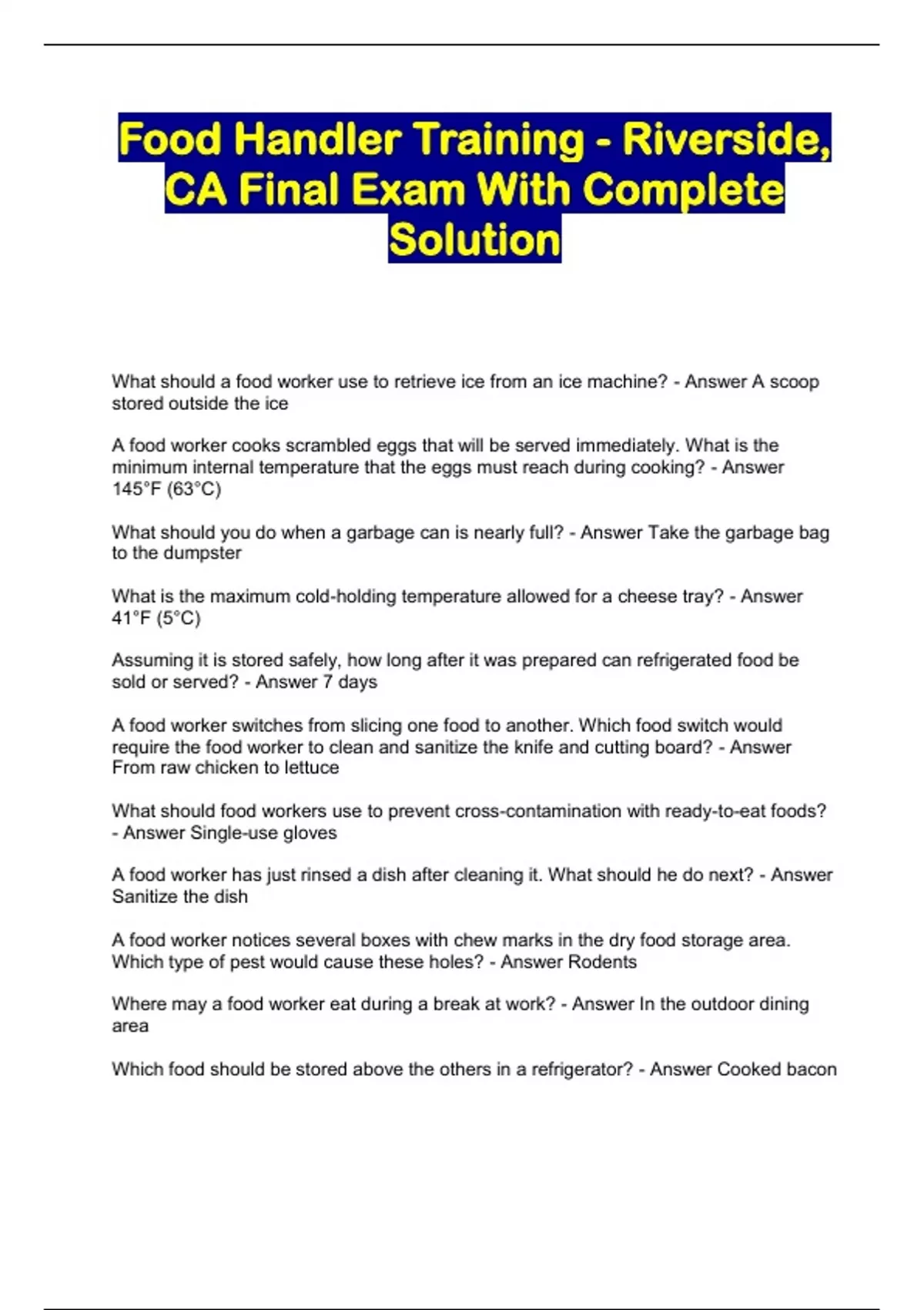 Food Handler Training - Riverside, CA Final Exam With Complete Solution...