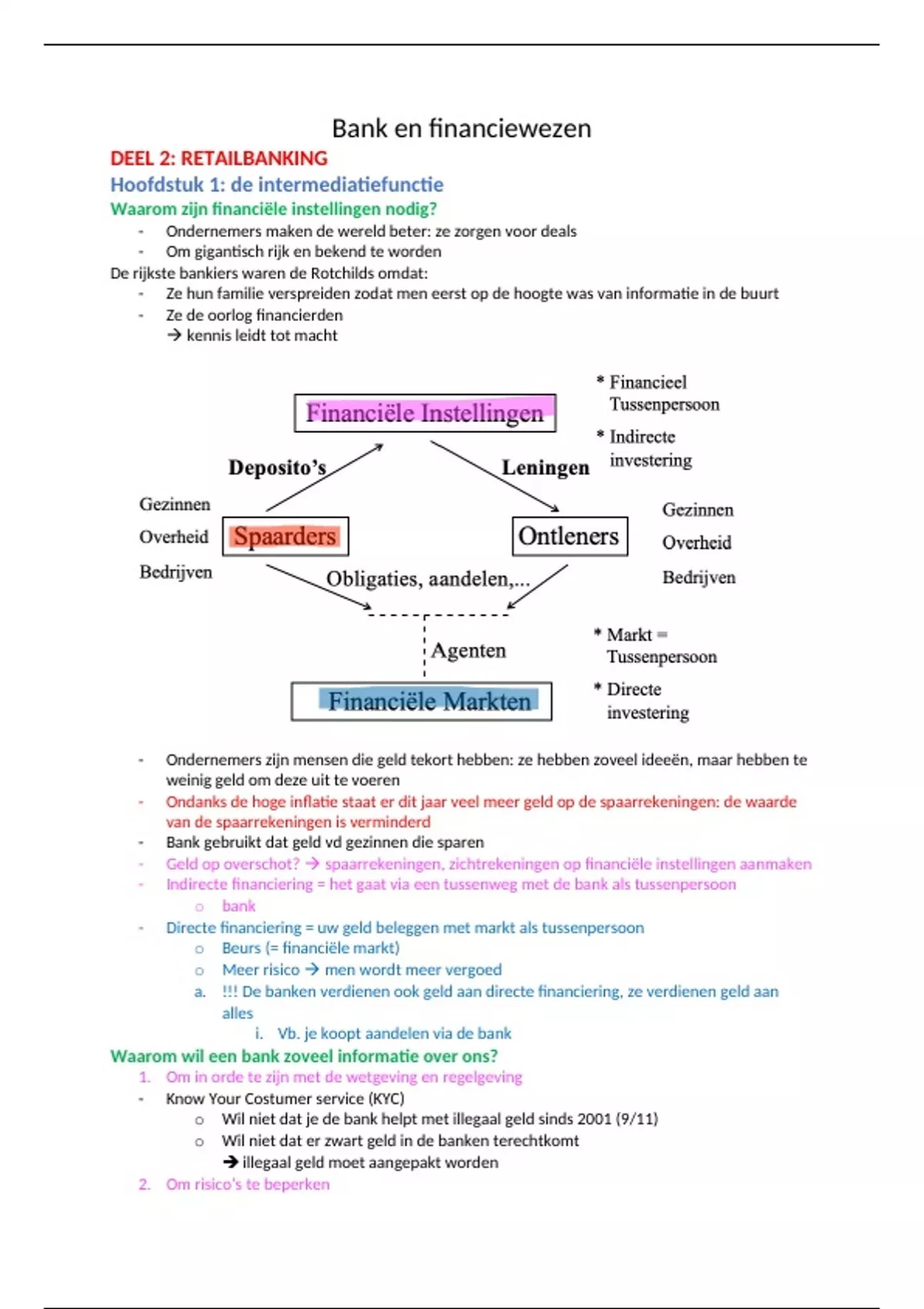- Indirecte financiering = het gaat via een tussenweg met de bank als tussenpersoon