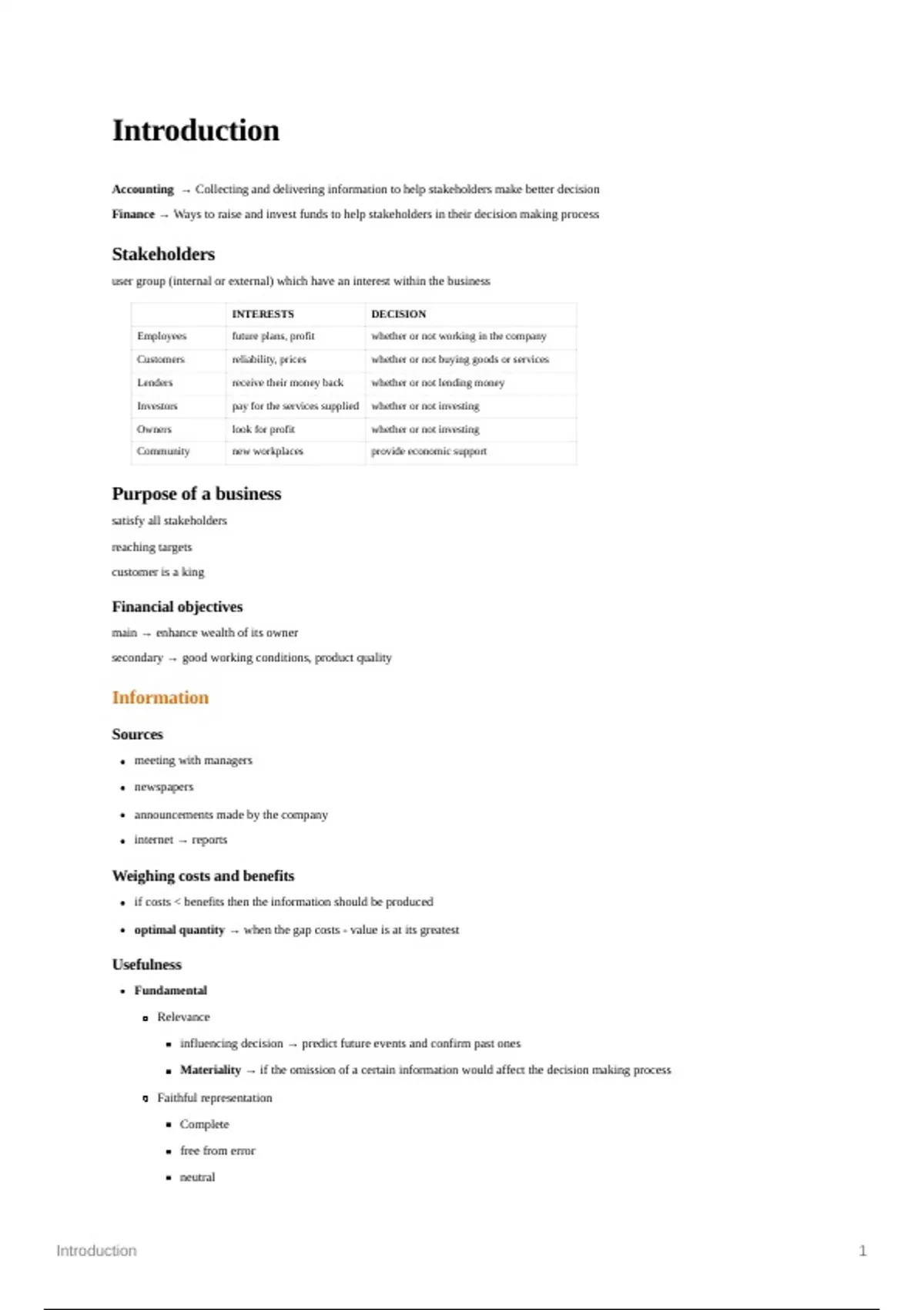 Finance → Ways to raise and invest funds to help stakeholders in their decision making process
