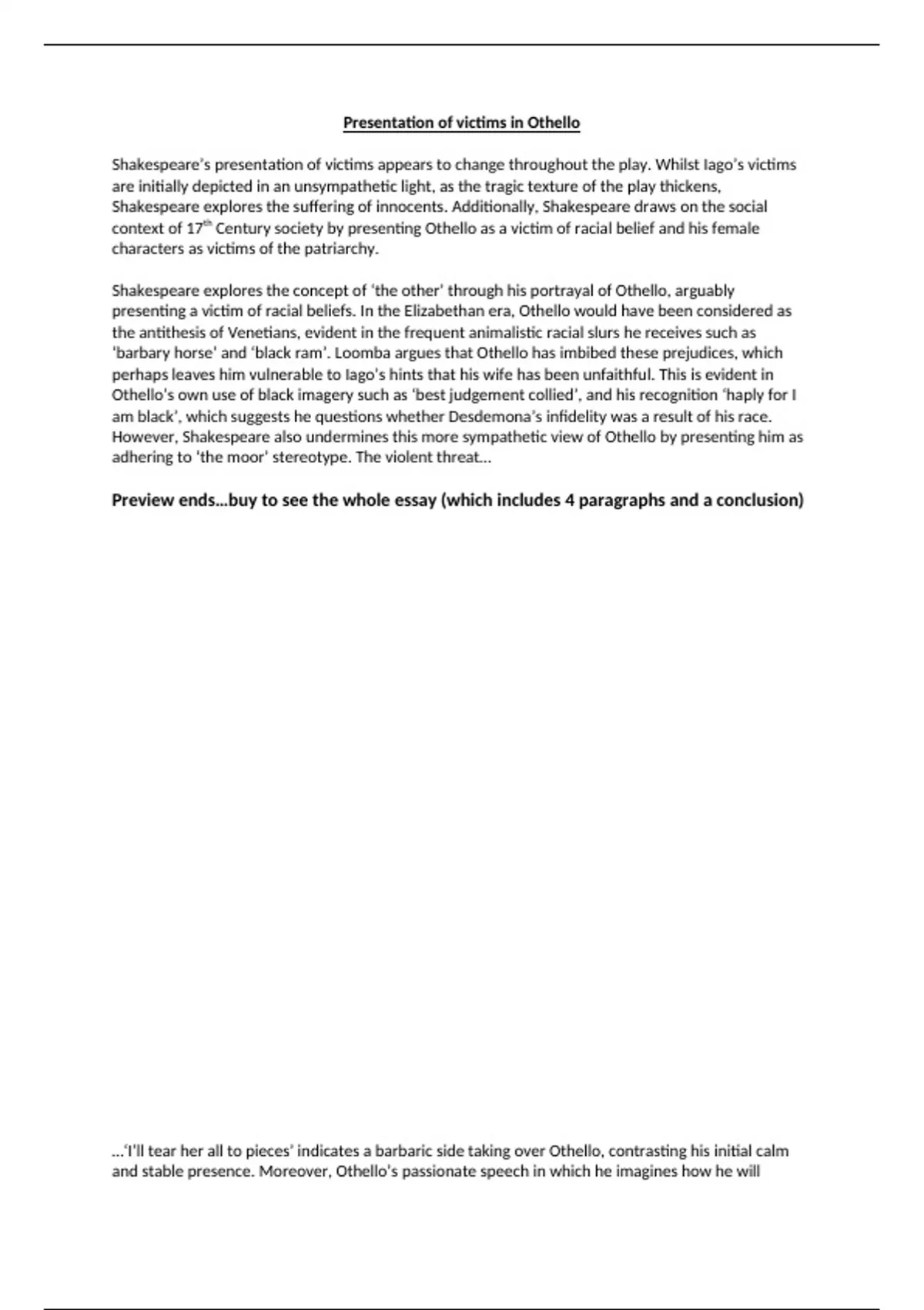 Shakespeare’s presentation of victims appears to change throughout the play. Whilst Iago’s victims