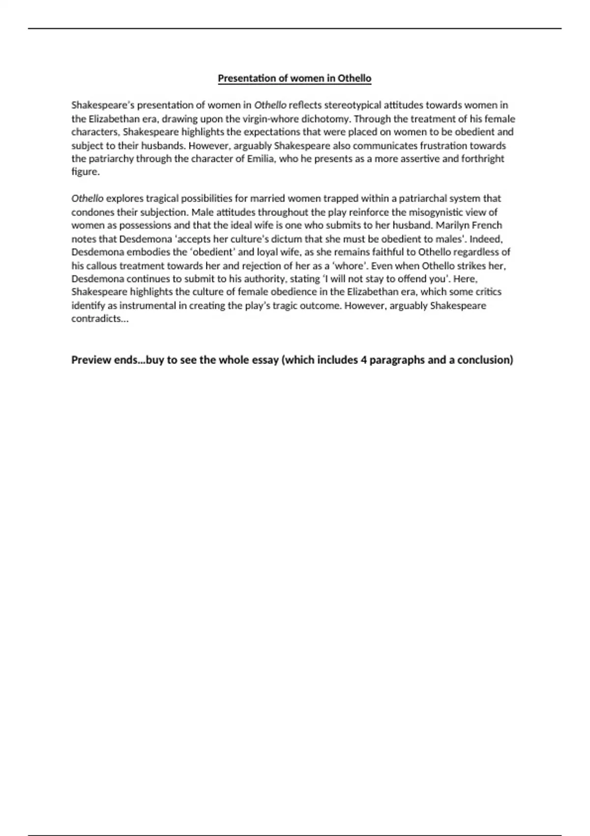 Shakespeare’s presentation of women in Othello reflects stereotypical attitudes towards women in