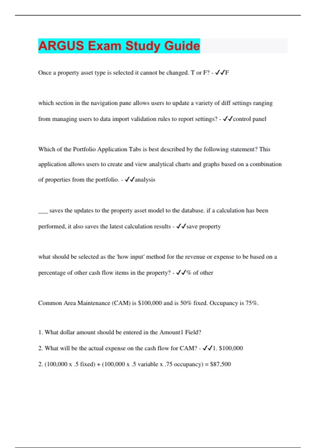 ARGUS Exam Study Guide | 107 Questions with 100% Correct Answers | Updated & Verified