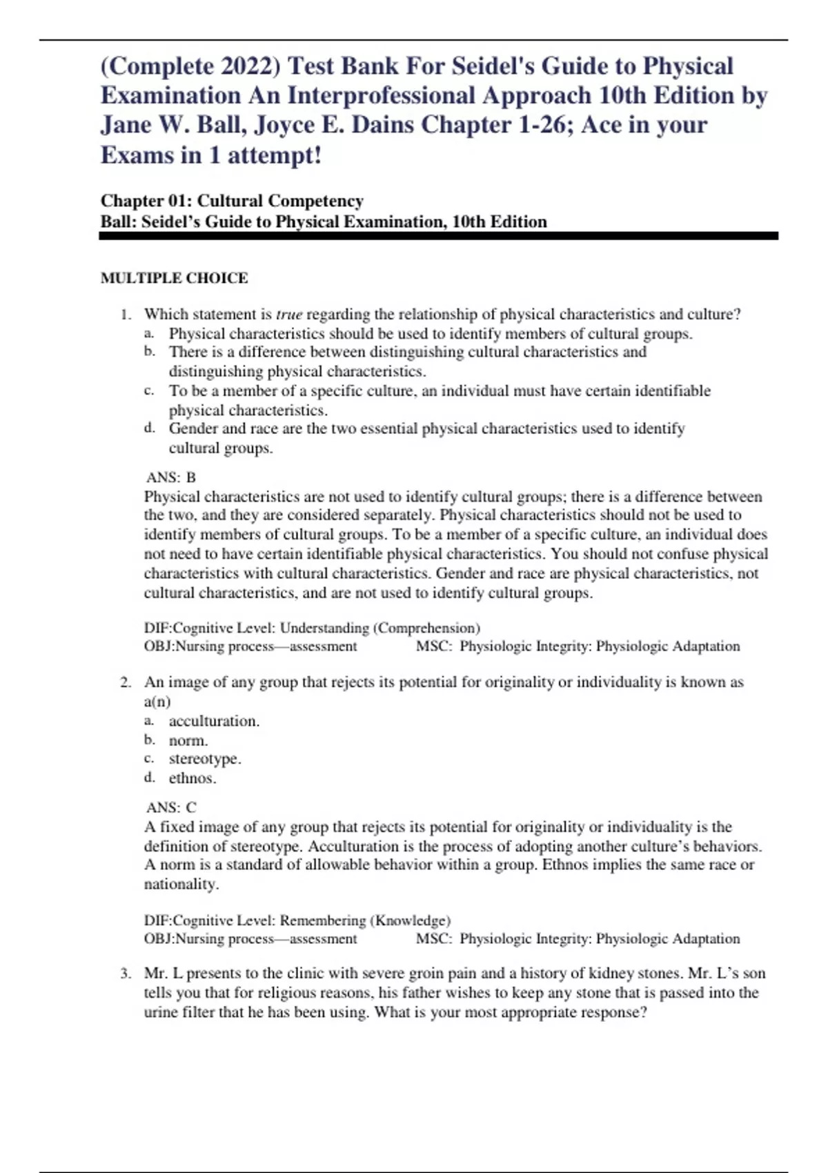 (Complete solutions 2023) Test Bank For Seidel's Guide to Physical Examination An Interprofessional Approach 10th Edition by Jane W. Ball, Joyce E. Dains (Complete solutions 2023) Test Bank For Seidel's Guide to Physical Examination An Interprofessional Approach 10th Edition by Jane W. Ball, Joyce E. Dains (Complete solutions 2023) Test Bank For Seidel's Guide to Physical Examination An Interprofessional Approach 10th Edition by Jane W. Ball, Joyce E. Dains (Complete solutions 2023) Test Bank For Seidel's Guide to Physical Examination An Interprofessional Approach 10th Edition by Jane W. Ball, Joyce E. Dains (Complete solutions 2023) Test Bank For Seidel's Guide to Physical Examination An Interprofessional Approach 10th Edition by Jane W. Ball, Joyce E. Dains (Complete solutions 2023) Test Bank For Seidel's Guide to Physical Examination An Interprofessional Approach 10th Edition by Jane W. Ball, Joyce E. Dains (Complete solutions 2023) Test Bank For Seidel's Guide to Physical Examination An Interprofessional Approach 10th Edition by Jane W. Ball, Joyce E. Dains (Complete solutions 2023) Test Bank For Seidel's Guide to Physical Examination An Interprofessional Approach 10th Edition by Jane W. Ball, Joyce E. Dains