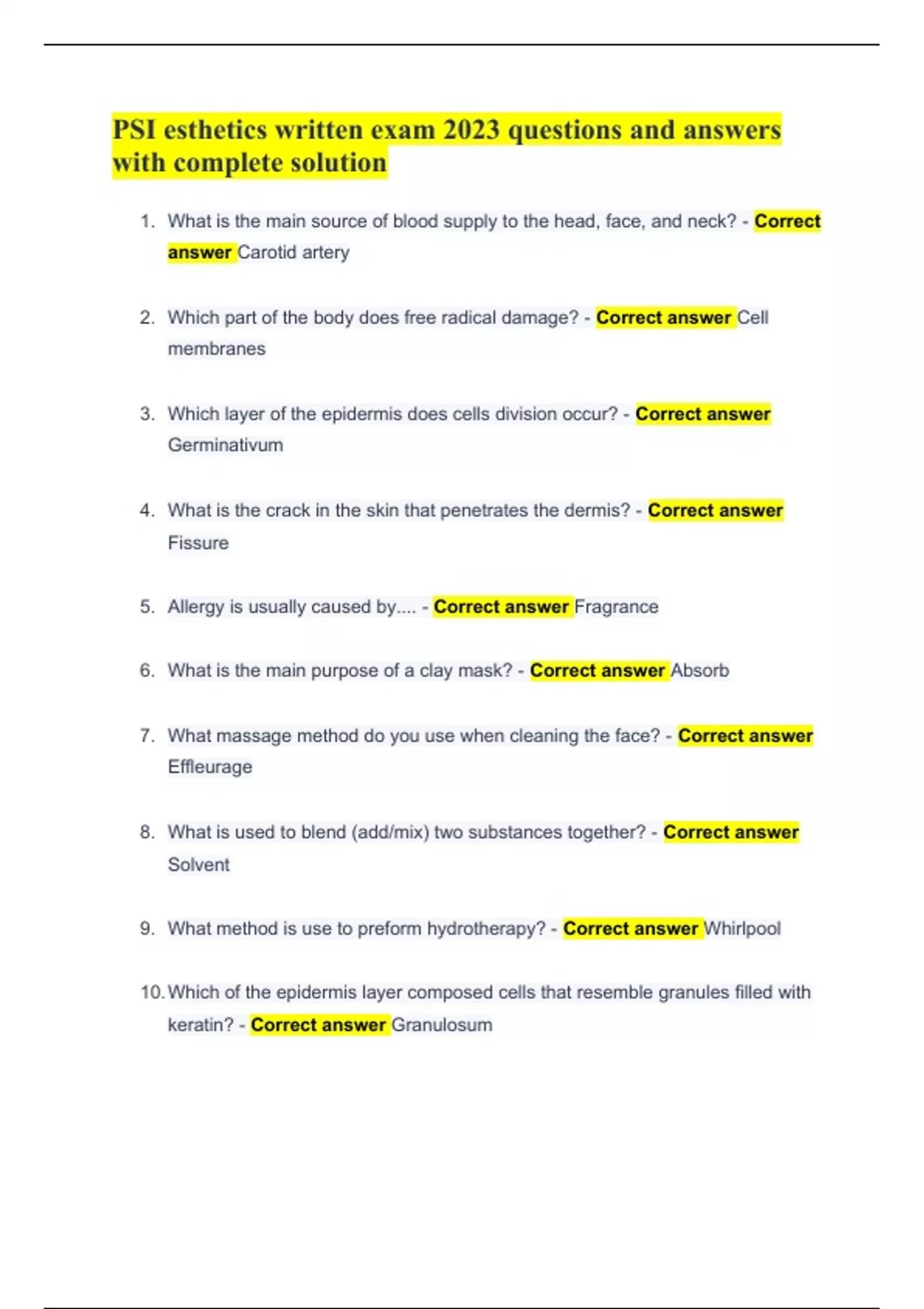 PSI esthetics written exam 2023 questions and answers with complete solution PSI esthetics written exam 2023 questions and answers with complete solution