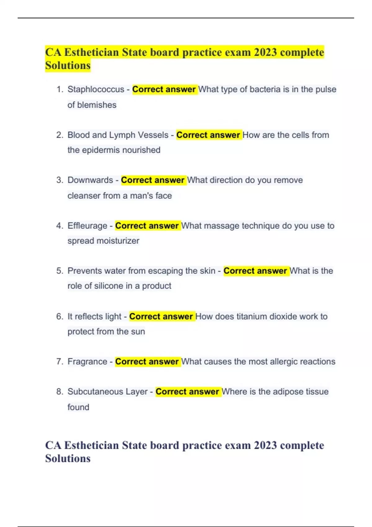 CA Esthetician State board practice exam 2023 complete Solutions