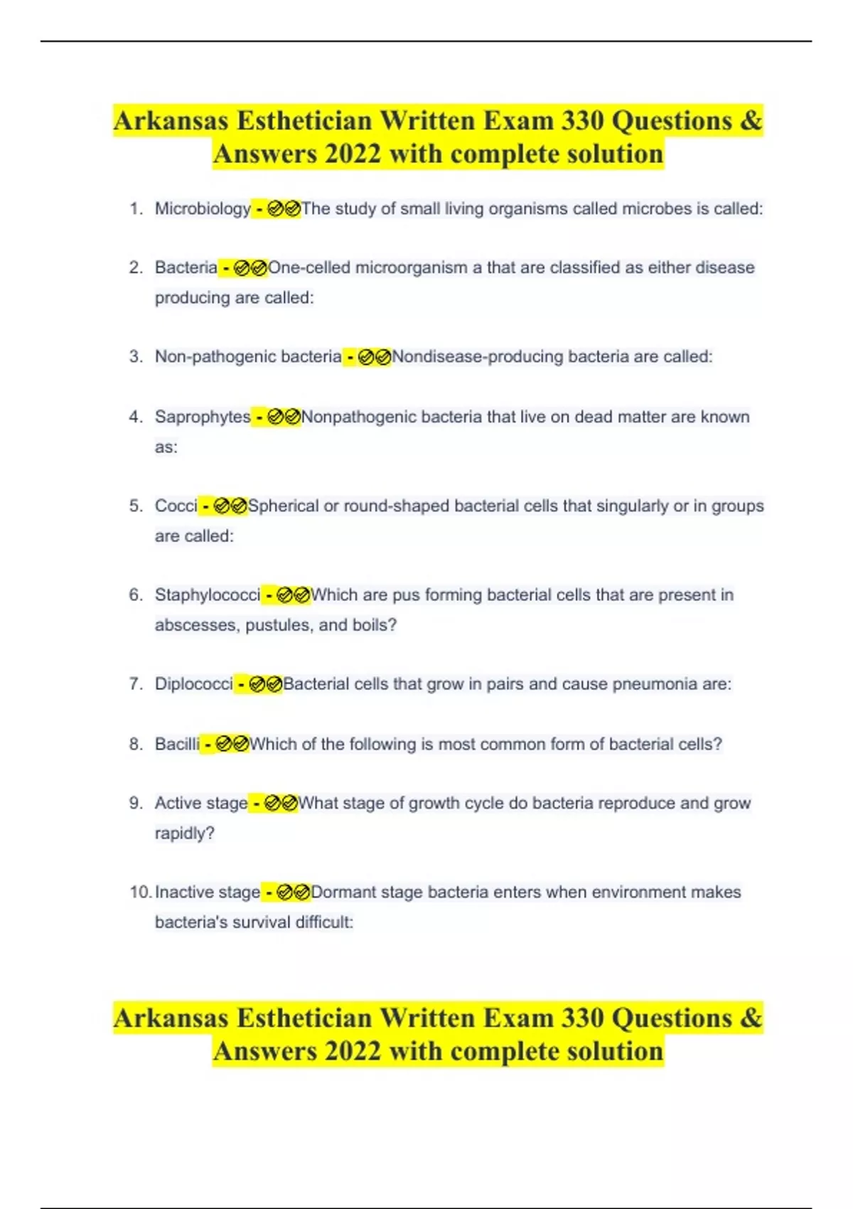 Arkansas Esthetician Written Exam 330 Questions & Answers 2022 with complete solutionArkansas Esthetician Written Exam 330 Questions & Answers 2022 with complete solution